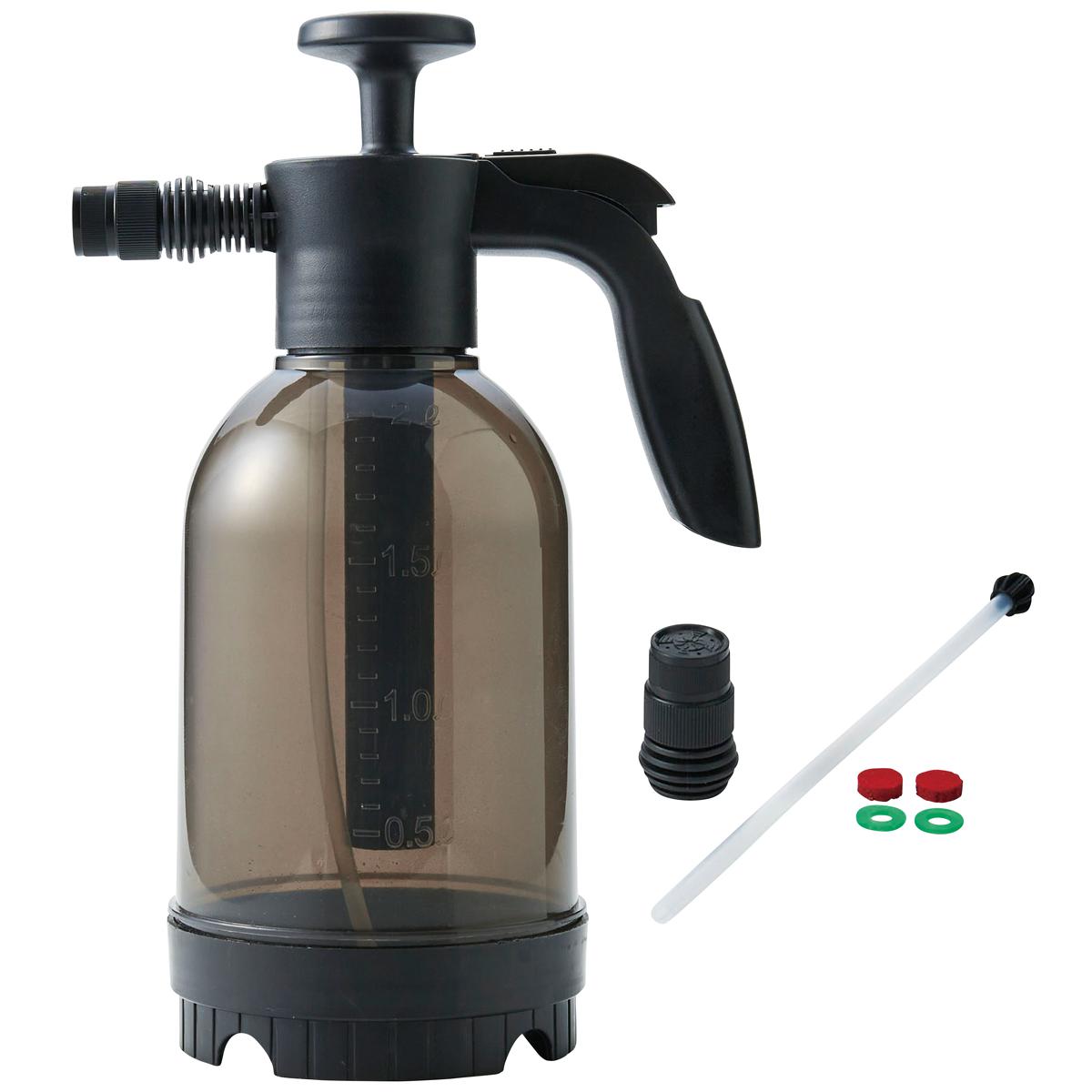 ■[本体]ポリプロピレン[ホース]ポリエチレン■サイズ(約cm)/22×13.5×32■容量/約2L■セット内容/本体1、水用ノズル1、泡用ノズル1、ホース2、パッキン2、泡用フィルター2、取扱説明書1※製造時検品の際に、水道水を使用して噴射試験をしている都合上、本体内に水が残っている場合がありますが、ご使用に問題はございません。※粘度の高い液体、強酸性、アルカリ性の液体は絶対に使用しないでください。また、洗浄剤は必ず水溶性の液体をご使用ください。洗浄剤は発泡性のあるものをご使用ください。発泡性のない液体洗浄剤を泡にして噴射することはできません。●中国製