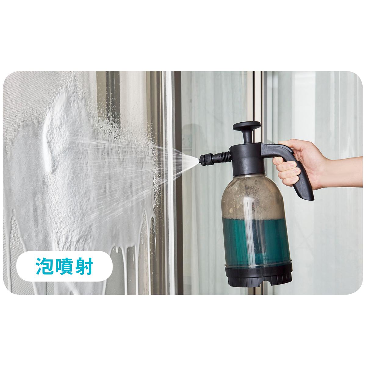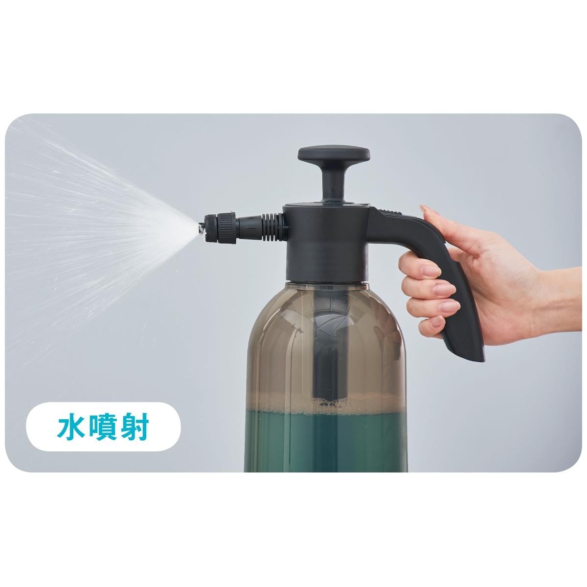水道・電池・電源がなくても、蓄圧式でジェット水圧!ポンプ式のジェット泡洗浄クリーナー。泡水・ジェット(水)・シャワー(水)の3種のノズルを使い分けて、便利にお掃除!●水噴射ボトルに水を入れて、ポンプを約20回上下し蓄圧。レバーをにぎると、ノズルから噴射します。●泡噴射ボトルに水と液体洗浄を入れて、ポンプを約20回上下し蓄圧。レバーをにぎると、ノズルから泡が噴射します。