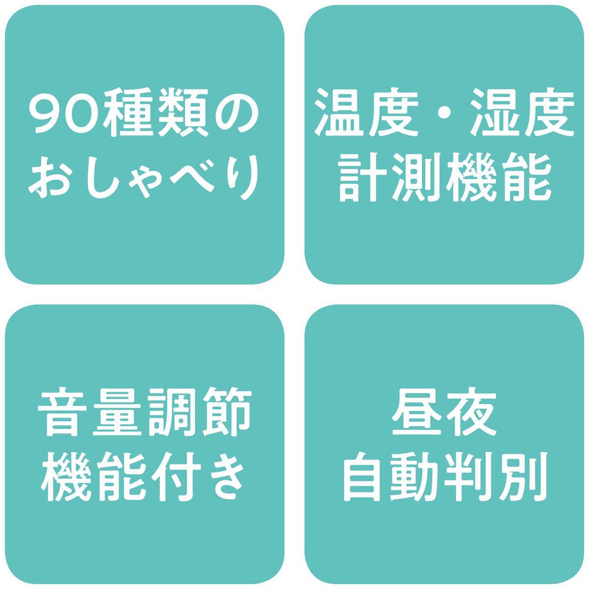 90種類のおしゃべり 温度・湿度計測機能 音量調節機能付き 昼夜自動判別