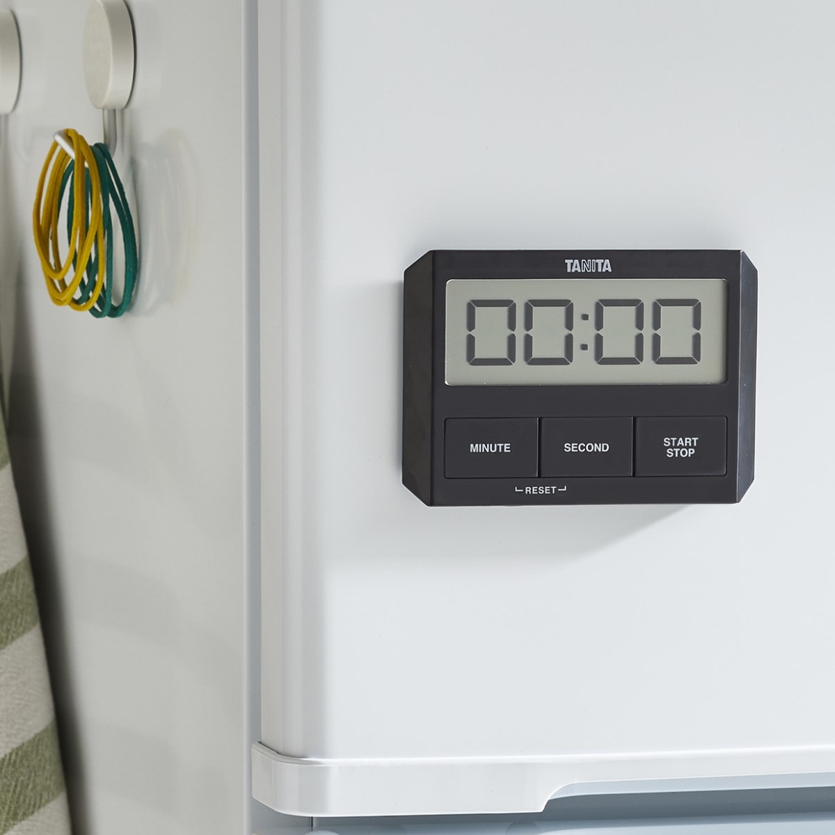 特殊な吸盤を使用し、ガラス、金属、タイルなどに貼り付けできるタイマー。スタイリッシュでインテリアにも馴染みやすい、白と黒の2色展開です。