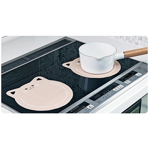 キッチンが楽しくなる、ネコのモチーフ♪天板にフィットしてずれにくく、うすいのでIHヒーターの加熱性を損なわない!