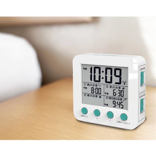 お薬の飲み忘れ・重複服用防止に!4つの服用時間を設定可能な電波時計◎