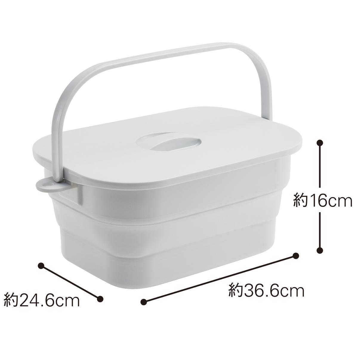 ■[枠・底・ハンドル・フタ・洗濯板]ポリプロピレン[本体]熱可塑性エラストマー■サイズ(約cm)/[折りたたみ時]W36.6×D24.6×H6.7[組み立て時]W36.6×D24.6×H16■容量/7L■耐熱・耐冷温度/100℃・-20℃●日本製