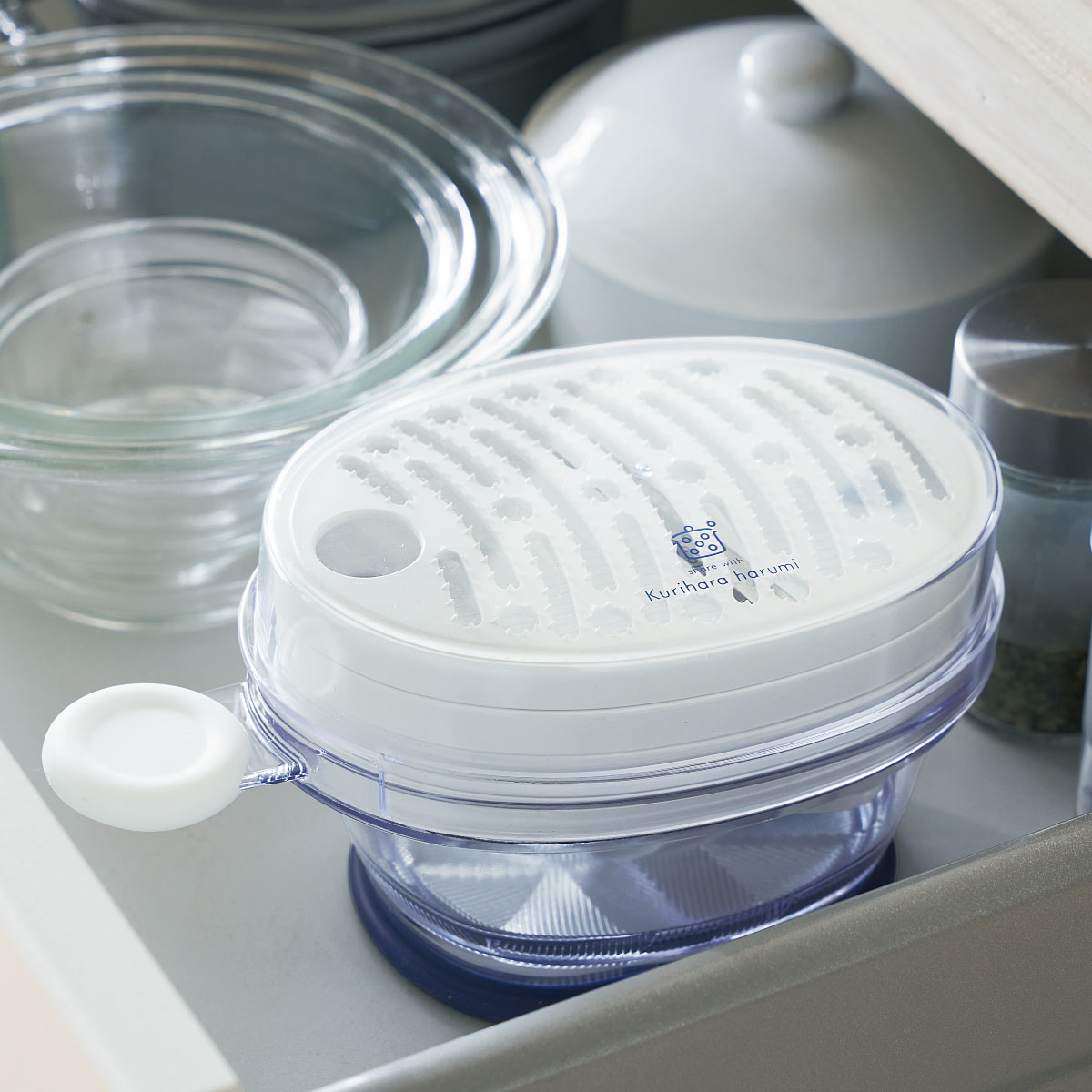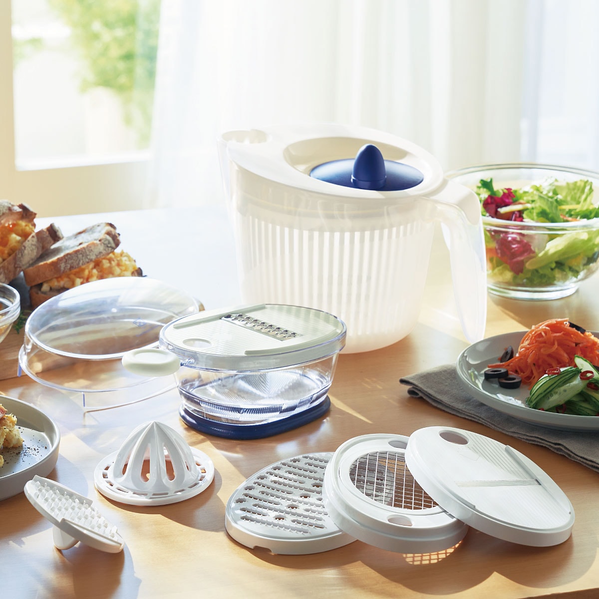 栗原はるみシリーズで揃えればおしゃれなキッチンに。(WF-6354 スライサーセットとWF-6355 サラダスピナー)