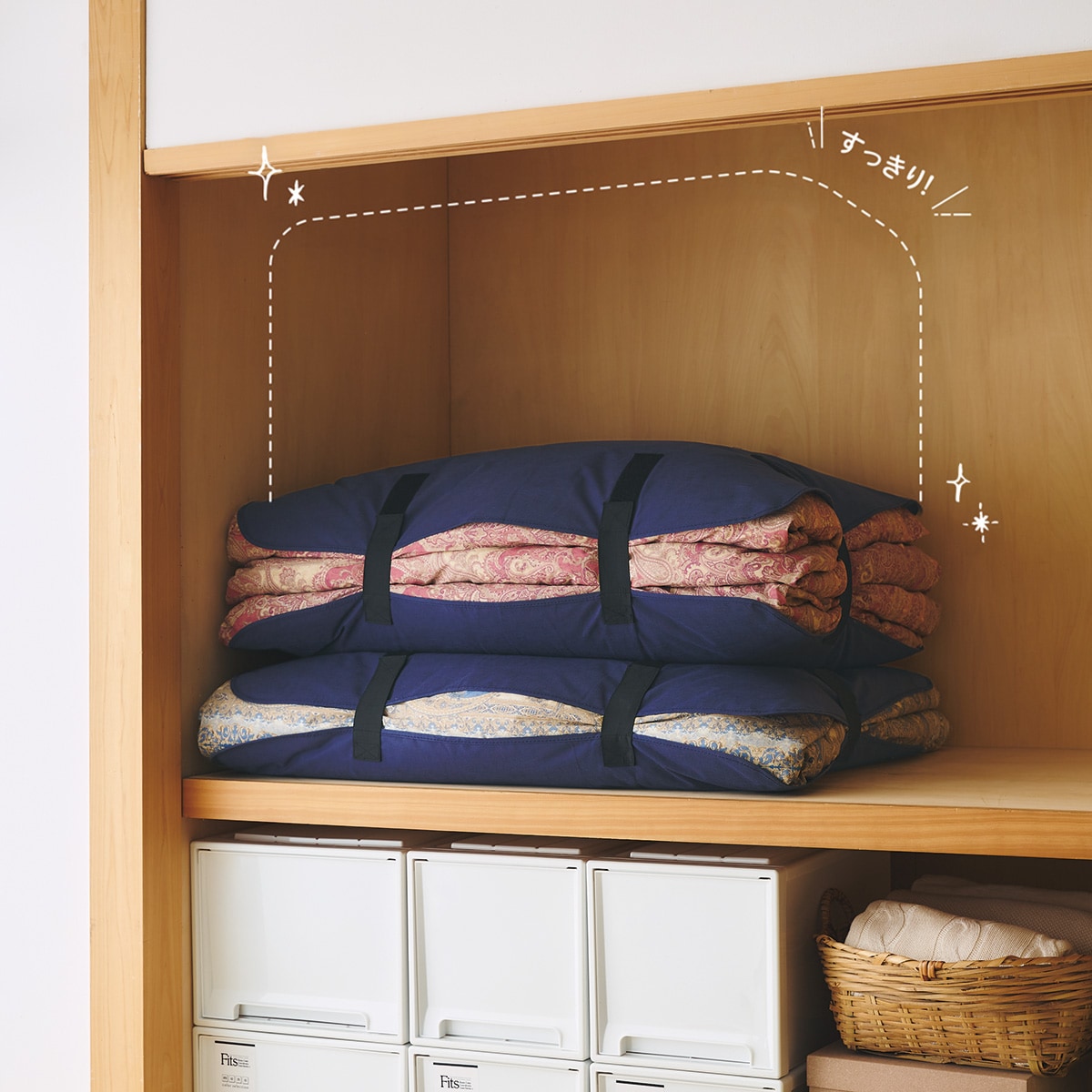 圧縮しないからフカフカのまま羽毛布団を早ワザ収納!