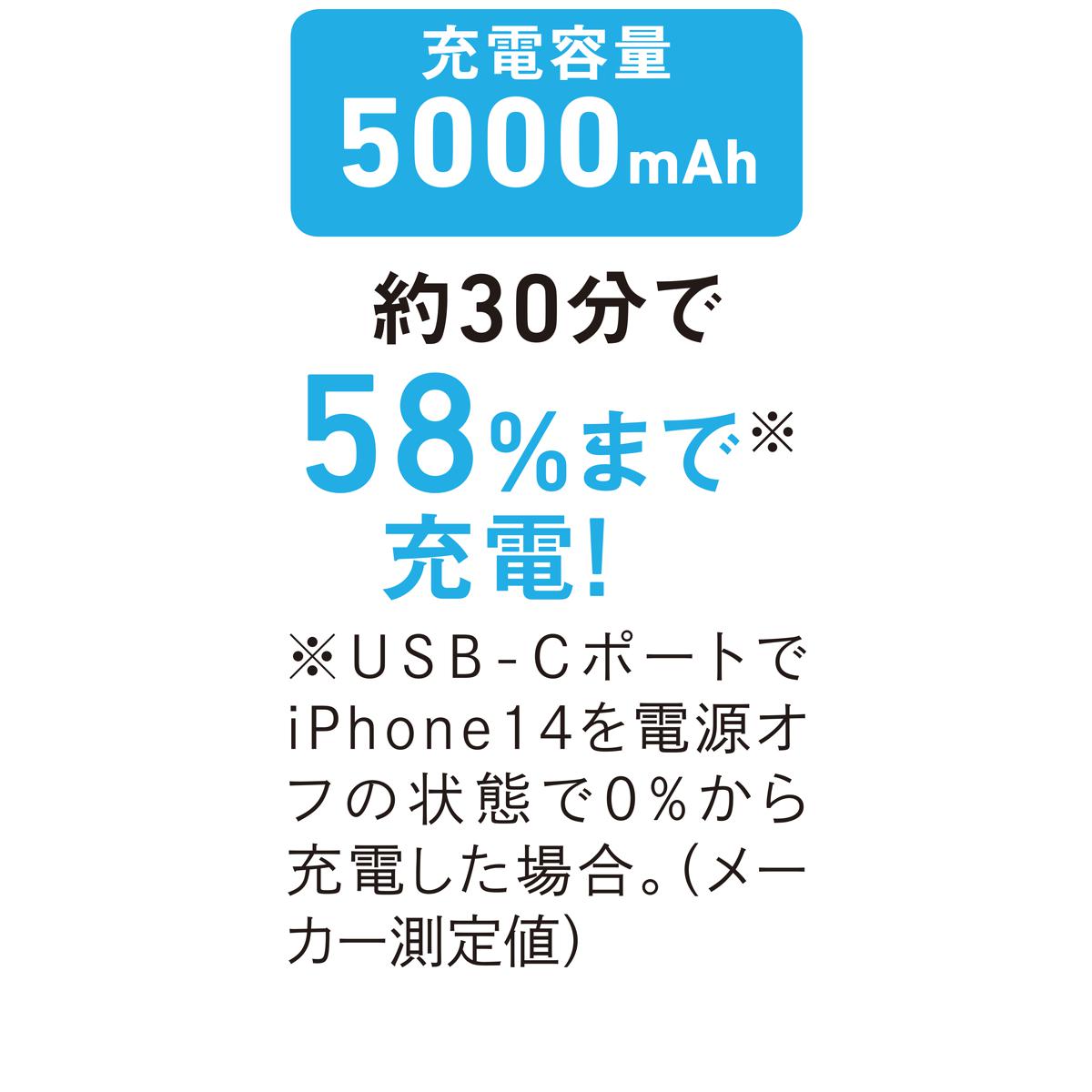 PD(超高速充電)対応 ACプラグ付モバイルバッテリー 5000mAh
