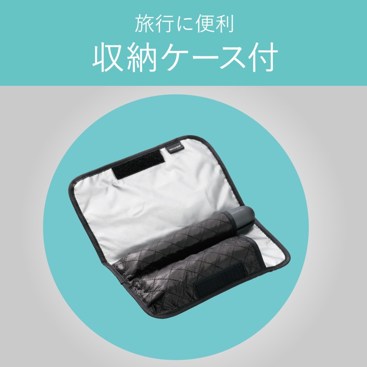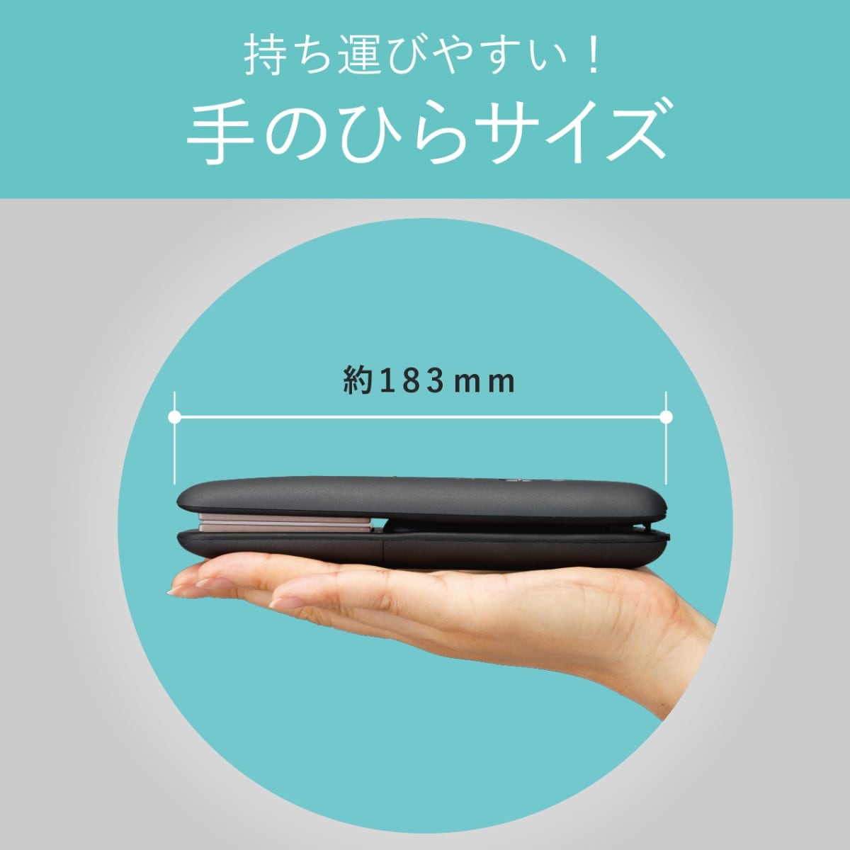 充電式のコードレスヘアアイロンです。手のひらサイズで持ち運びに便利なポーチ付きです。※海外で使用される場合は、市販のプラグアダプターが必要です。