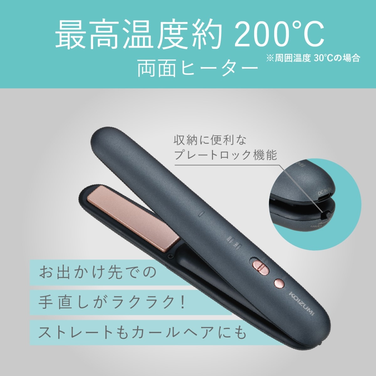 コンパクトで持ち運びがしやすい充電式のヘアアイロン!コード不要だから外出先でも髪の毛がセット出来る◎