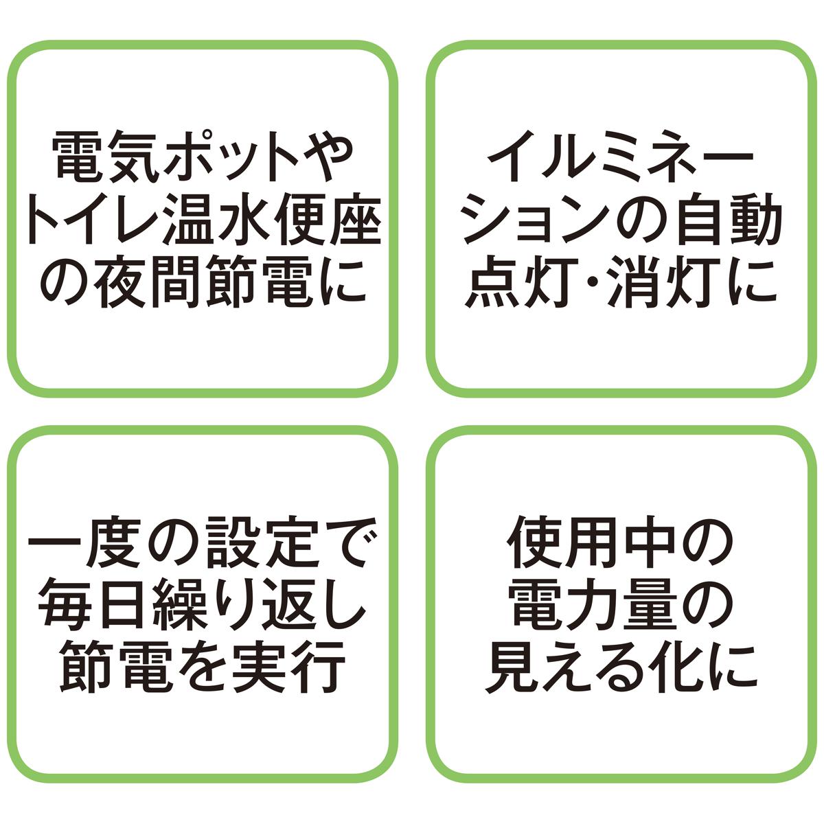 電気ポットやトイレ温水便座の夜間節電に イルミネーションの自動点灯・消灯に 一度の設定で毎日繰り返し節電を実行 使用中の電力量の見える化に
