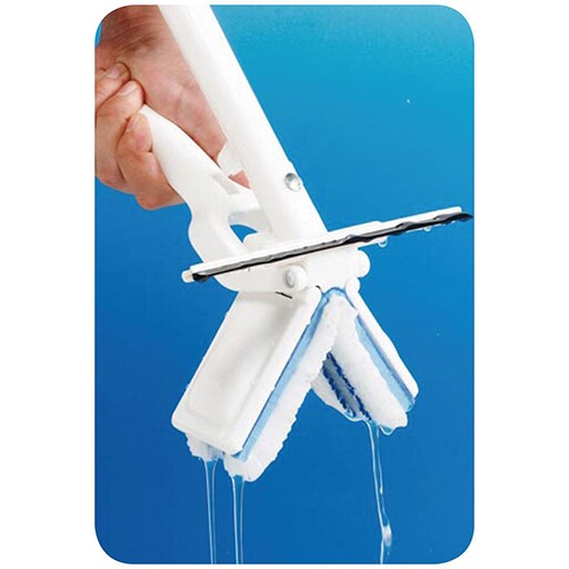 マイクロファイバーとブラシ繊維のWパワー!洗剤不要で汚れを落とします。ガラスをキレイに仕上げる水切りゴム付き。絞りレバーを引き下げるだけで、手を汚さず一気に絞れます。