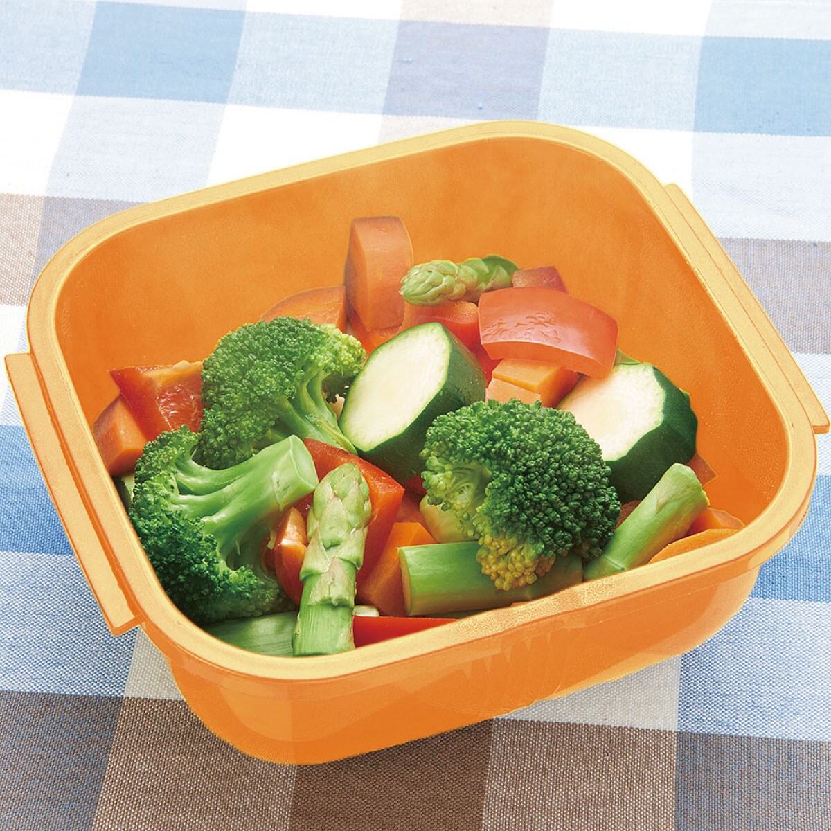 独自の加圧構造で野菜の無水調理も栄養を逃さず、色鮮やかで素材本来の旨みがぎゅっ。火が通りやすいので時短調理にも。