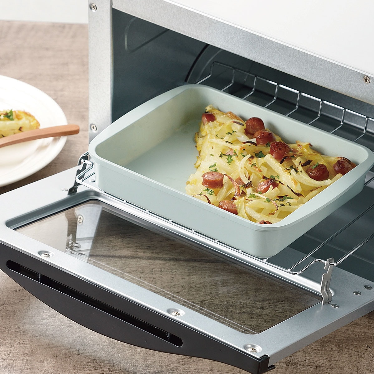<調理にも!解凍プレートとしても!>魚焼きグリルやトースターで調理し、出来立てそのまま食卓へ運べるグリルパン