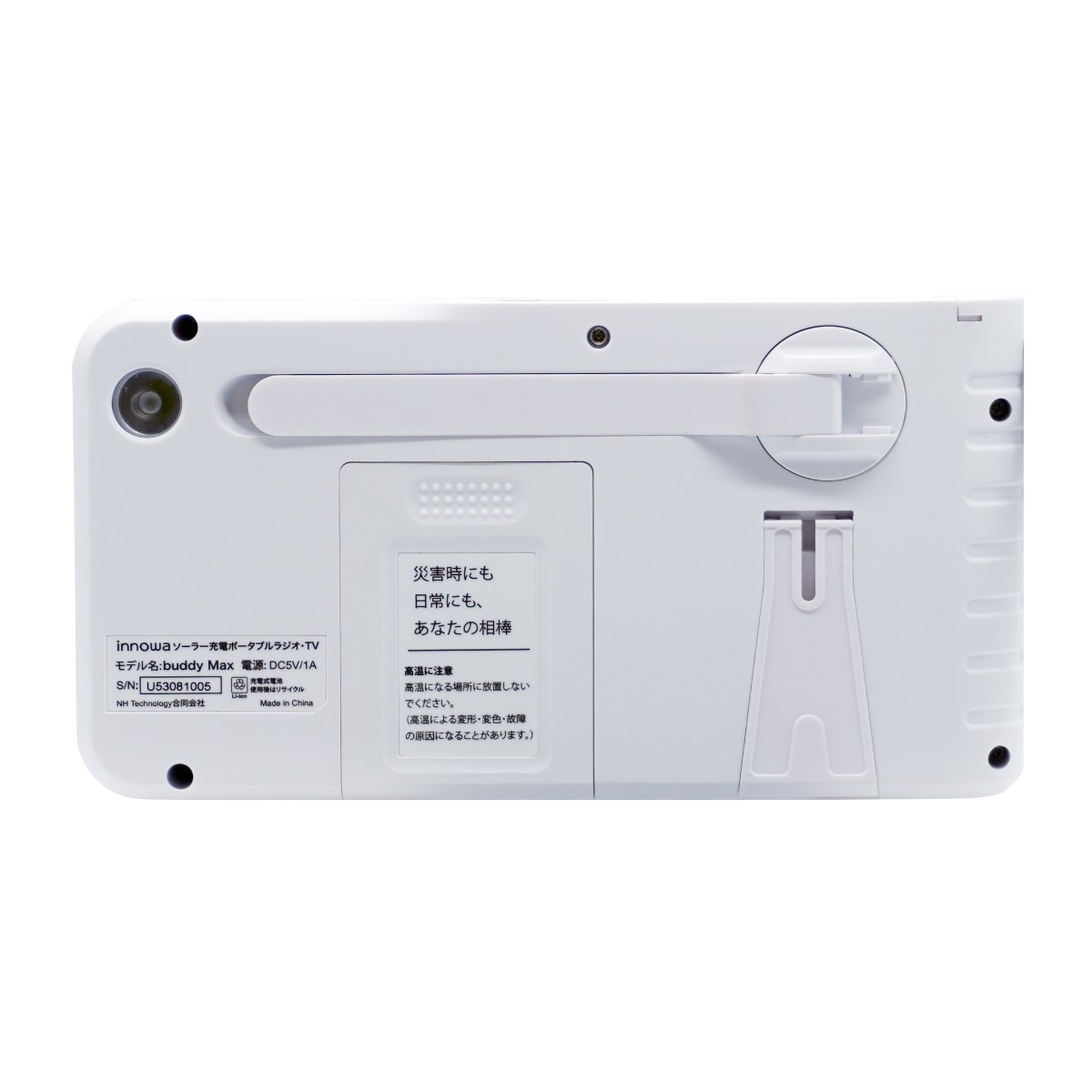 災害時にも日常にも、あなたの相棒に! 4WAY電源(ソーラー充電・充電池・乾電池・手回し)でどこでも使えるポータブルラジオ・TV「buddy Max」です。
