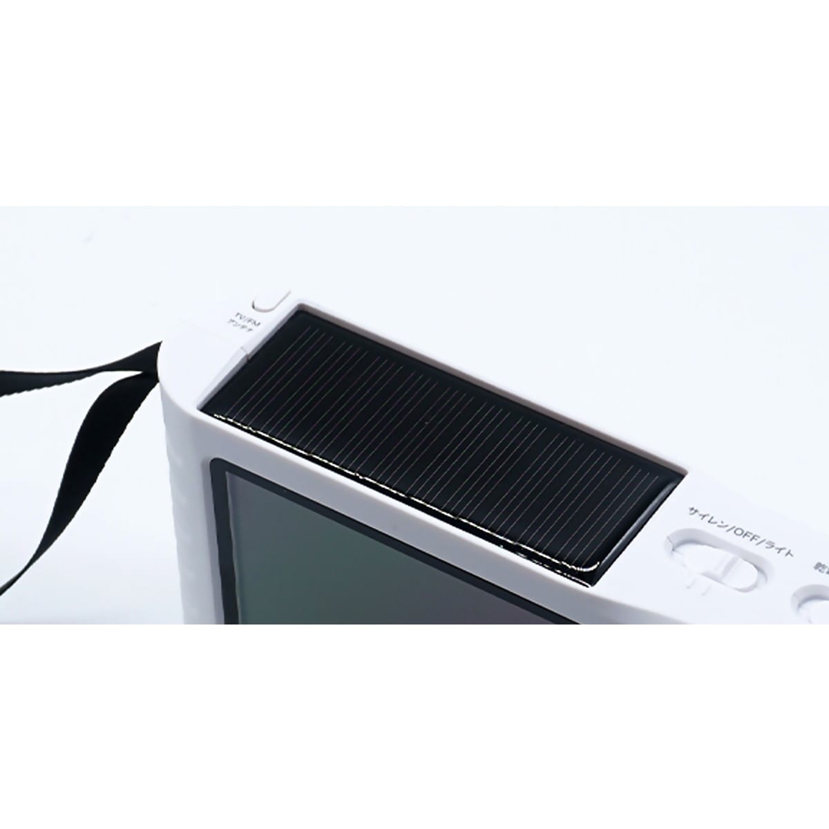 5インチ大画面液晶でワンセグTVも見やすい! AM・FM・短波ラジオも対応。夜間や停電時に便利なLEDライト、さらに緊急時・災害時に役立つサイレンなど防災機能も充実です。4WAY電源1.ソーラー充電:本体上部に設置しているソーラーパネルより充電できます。2.充電池:付属のUSBケーブルとACアダプターを接続して電源を供給・充電できます。3.乾電池:別売の単3アルカリ乾電池3本で動作します。4.手回し:すぐに電源・電池を確保できない場合は、本体ハンドルを手動で回転させることで、内蔵充電池へ充電できます。