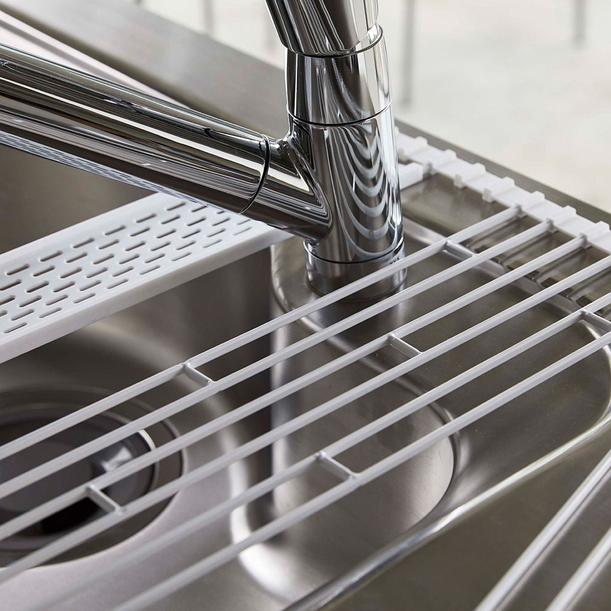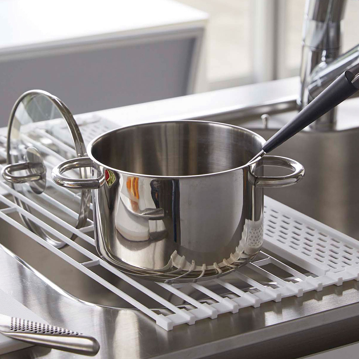 使わないときはくるっと巻いてコンパクトにできる水切りで、様々な用途で使用可能キッチン周りをより快適に