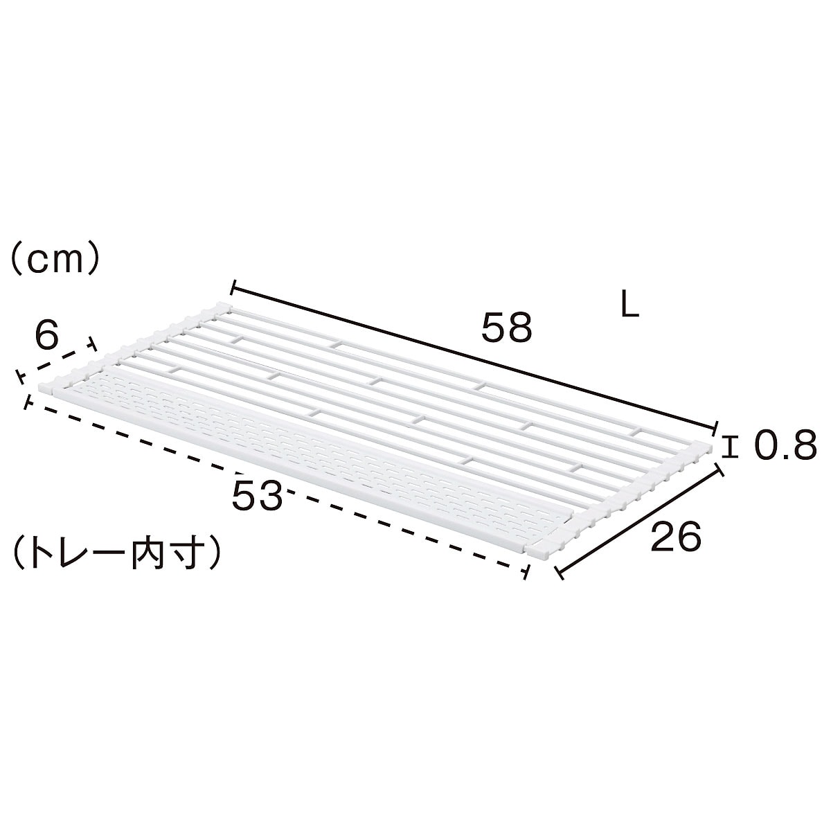 ■本体:スチール(ユニクロメッキ+粉体塗装)キャップ・トレー:シリコーン■サイズ(約cm)S:42x26x0.8 L:58x26x0.8■トレー内寸(約cm)S:36.5x6 L:53x6■耐荷重(約kg)4 ■対応サイズ S:奥行38cm以下のシンク L:奥行54cm以下のシンク■耐熱温度:220℃(シリコーントレー部)■耐冷温度:-40℃(シリコーントレー部)●中国製
