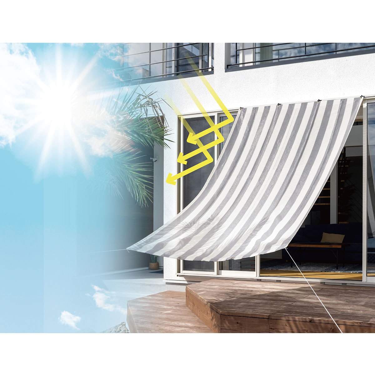 日差しを遮り、窓まわりを涼しく!紫外線と日差しをカットし、程よく風が通るベランダに