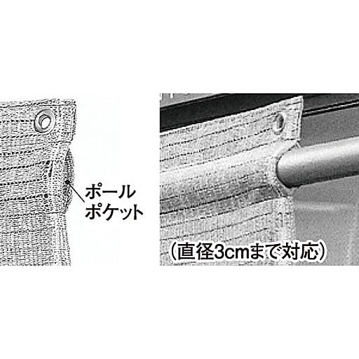 物干し竿が通せるポールポケット付き ポールポケットを下側にして市販のポール等を入れるとシェードをピンと張ることもできます。