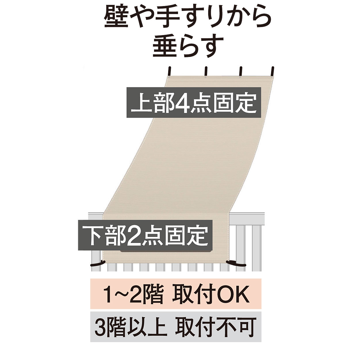 壁や手すりから垂らす※90×200cmのみ上部固定は2点となります。