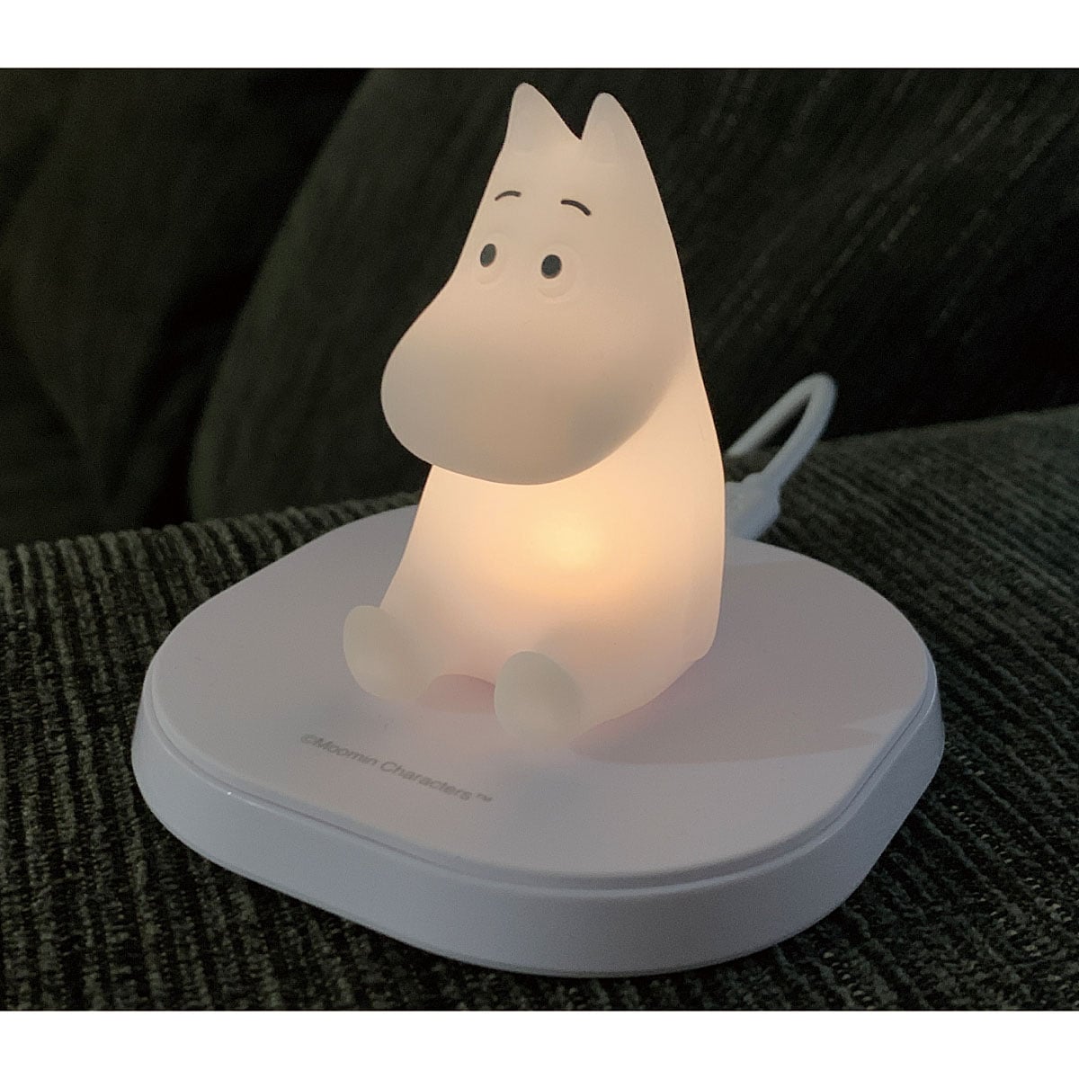置くだけで充電できる!ワイヤレス充電器!スマホ充電しないときは、ムーミンを置いてライトとしても使えます。ベッドサイドのライトとしてもおススメです♪