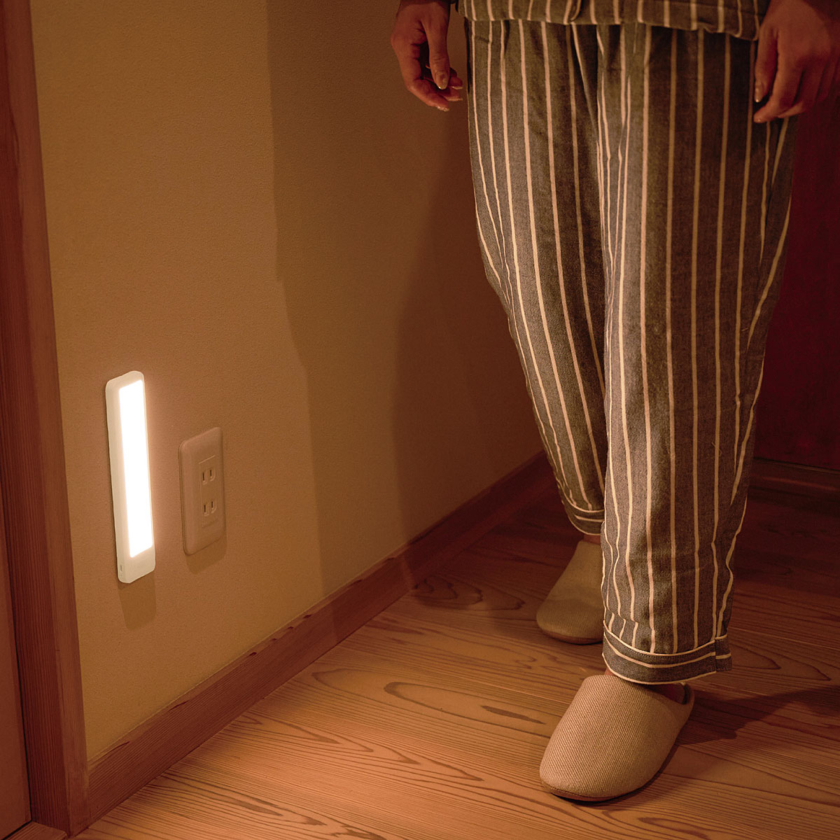 人感センサーで必要な時だけ点灯!階段、クローゼット、ベッドサイド、出入口、食器棚などにもおすすめです。マグネット内蔵でくっつくから便利!マグネットがつかない場所も、付属の金属プレートで設置でき、様々な用途に対応できます◎※金属プレートの貼り付けには両面テープ(別売り)が必要です。