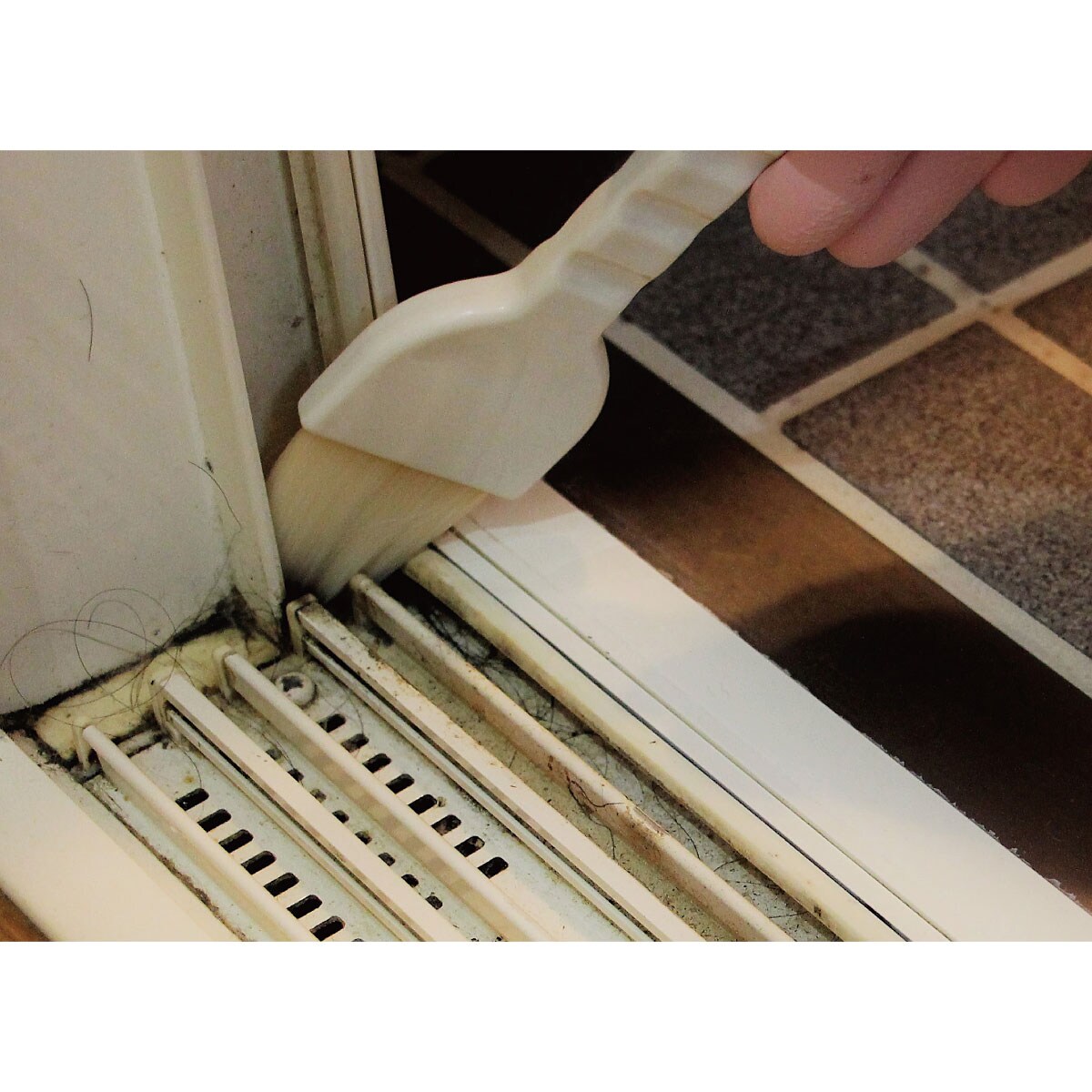 【窓際のサッシに】専用ハケで角から除去 細かい隙間や角も、専用のハケで的確に洗浄。
