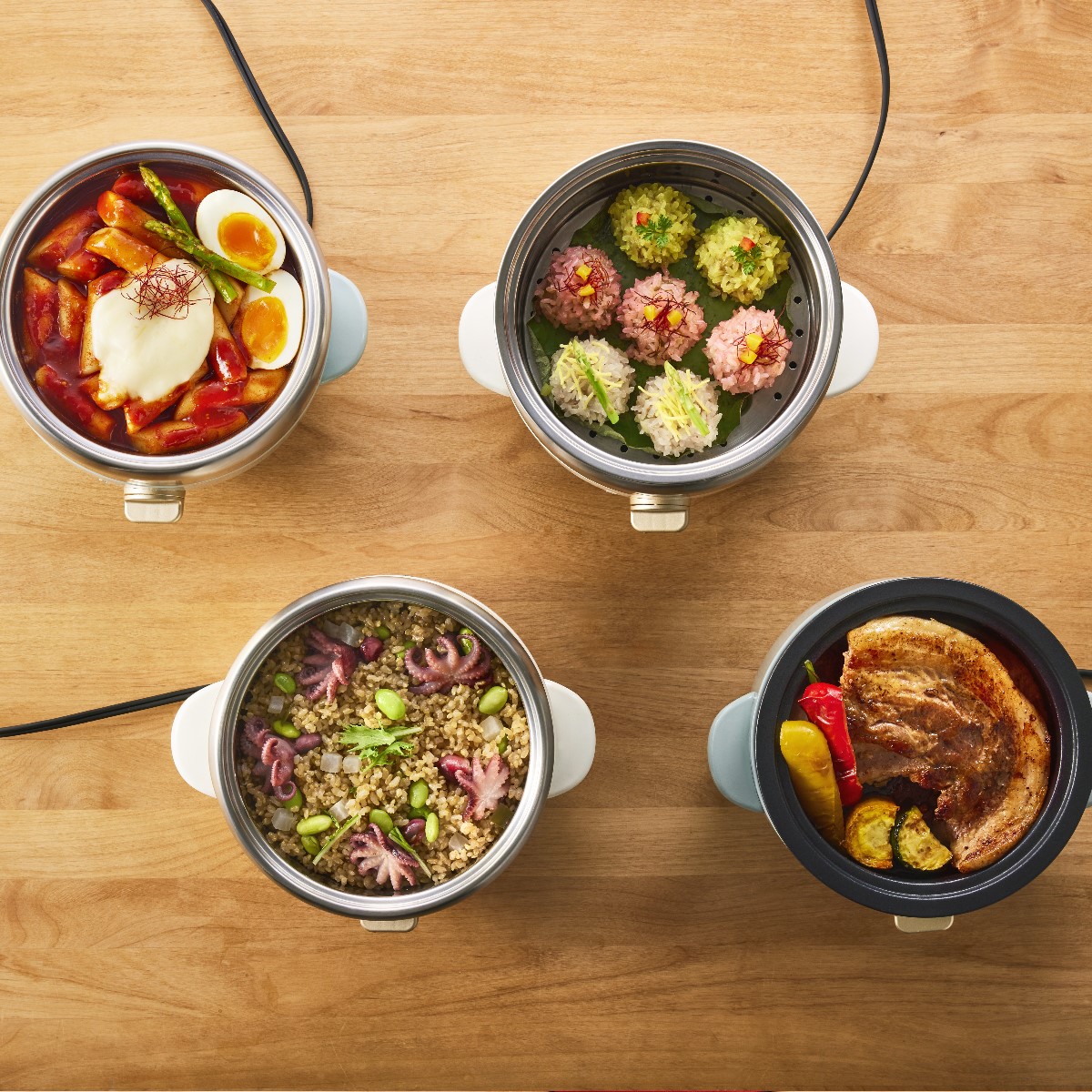 1~2人分の食卓にちょうどよいコンパクトサイズ。付属のプレートを変えるだけで、おかず・おつまみ・スイーツなど幅広い料理がオールシーズン楽しめます。保温から強火まで簡単に温度調節可能!コンパクトなサイズ感で収納ラクラク。本体は拭き取りやすい構造&各プレートは丸洗い可能でお手入れ簡単。卓上クッキングをもっと手軽に、毎日のごはんを愉しくおいしく彩ります。