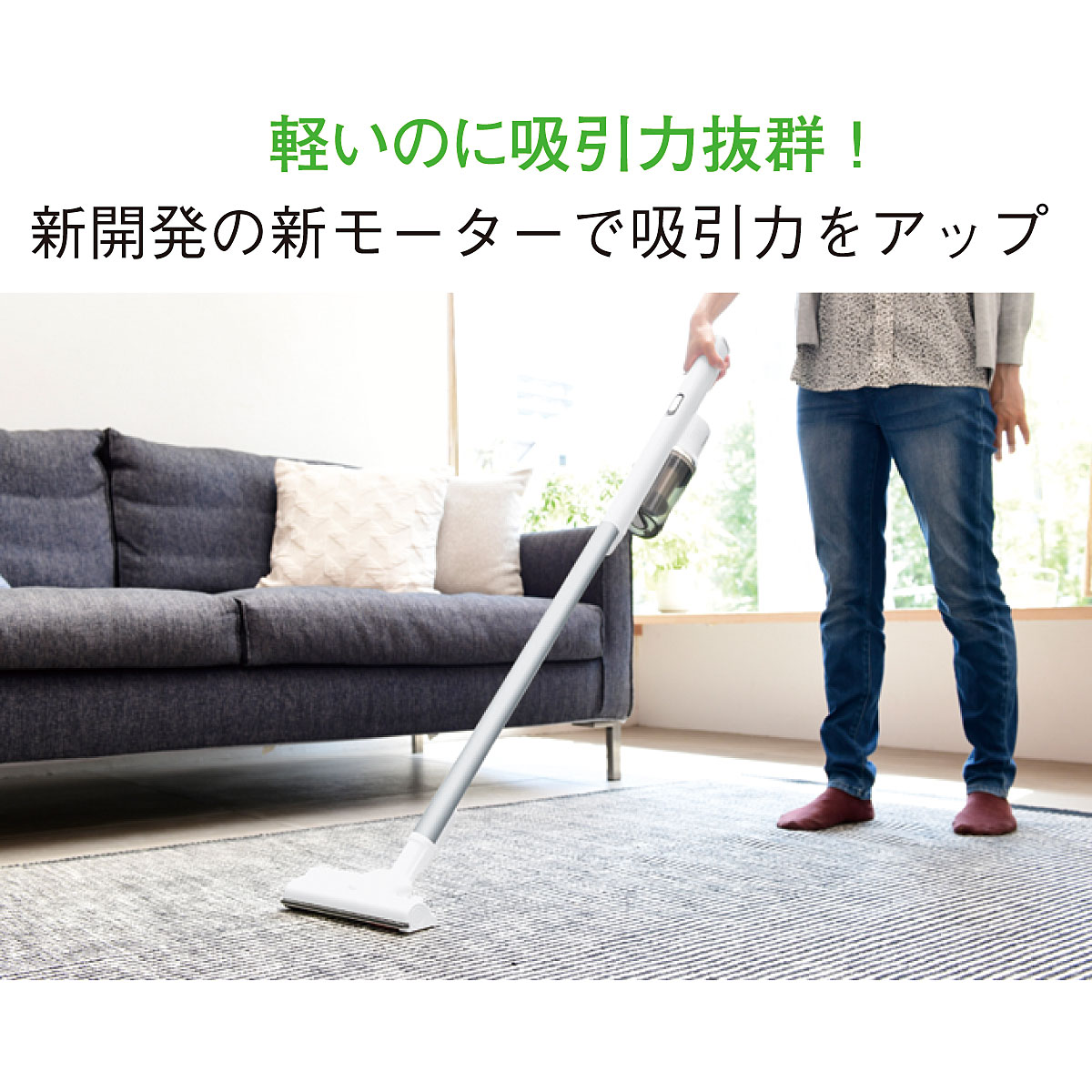 ■サイズ(約cm)/[スティッククリーナー時]21.2×17.5×高さ104.5 [ハンディクリーナー時]8×11×高さ43 ■重量/約980g(ハンディクリーナー時 約650g) ■充電時間/約3.5時間■集じん容量/0.3L ■連続使用時間/[強]約11分[標準]約30分 ■充電アダプタ/[入力]AC100V-240V [出力]DC18V 0.7A ■リチウムイオン電池/14.8V 2000mAh ■電源コード長さ/約1.5m ●付属品/ブラシ付きすき間ノズル、フロアノズル、延長管、充電アダプター[航空便不可]●中国製【返品・交換不可】 【保証書付1年間】 【航空便不可】