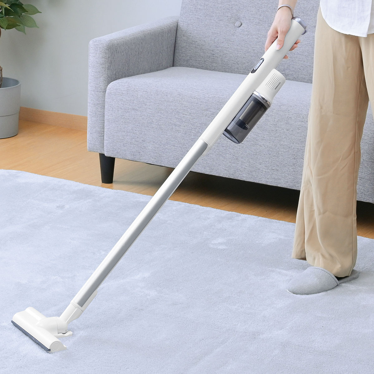 <<家電批評2023年 コードレス掃除機1.0kg未満モデル部門受賞>>ノズルを脱着でき、スティックとハンディの2通りに使い分けできるので、用途に合わせて使い分け。高いところも軽々届くから、今まで手の届かなかった場所もお掃除できて嬉しい♪ブラシは取り外して洗えるので衛生的◎パワフルな吸引力でゴミだけをダストカップに集じん。ヘッドの小回りが効くから、家具の隙間などにしっかり届く優れものです。