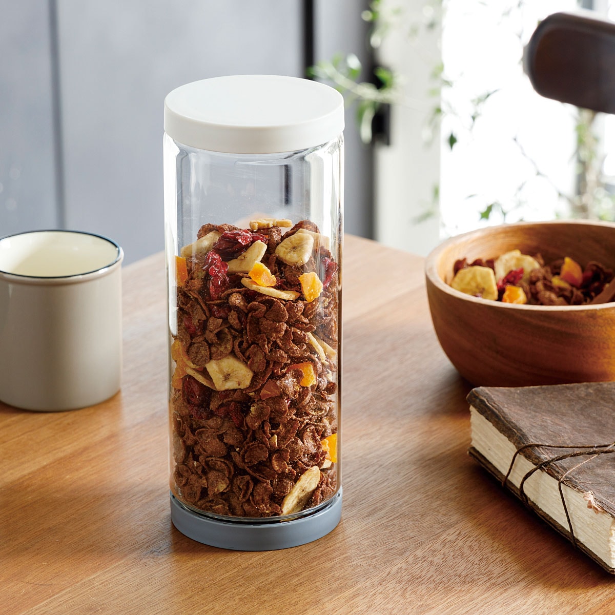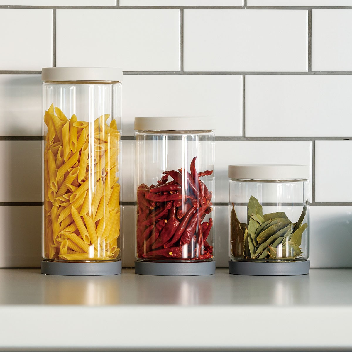 ■[本体]耐熱ガラス [フタ]ポリプロピレン [パッキン]シリコーンゴム ■サイズ(約cm)/直径9.5×高さ(S:12.5、M:18、L:24) 容量(約mL)/[S]600 [M]900 [L]1300●中国製