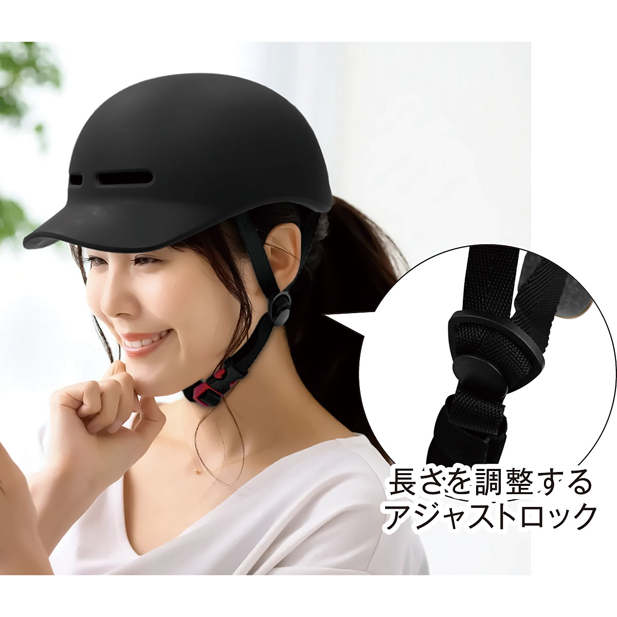 ヘルメット回転ノブ、長さを調整するアジャストロックで簡単サイズ調節。男女兼用で、普段使いしやすいオシャレなデザイン◎