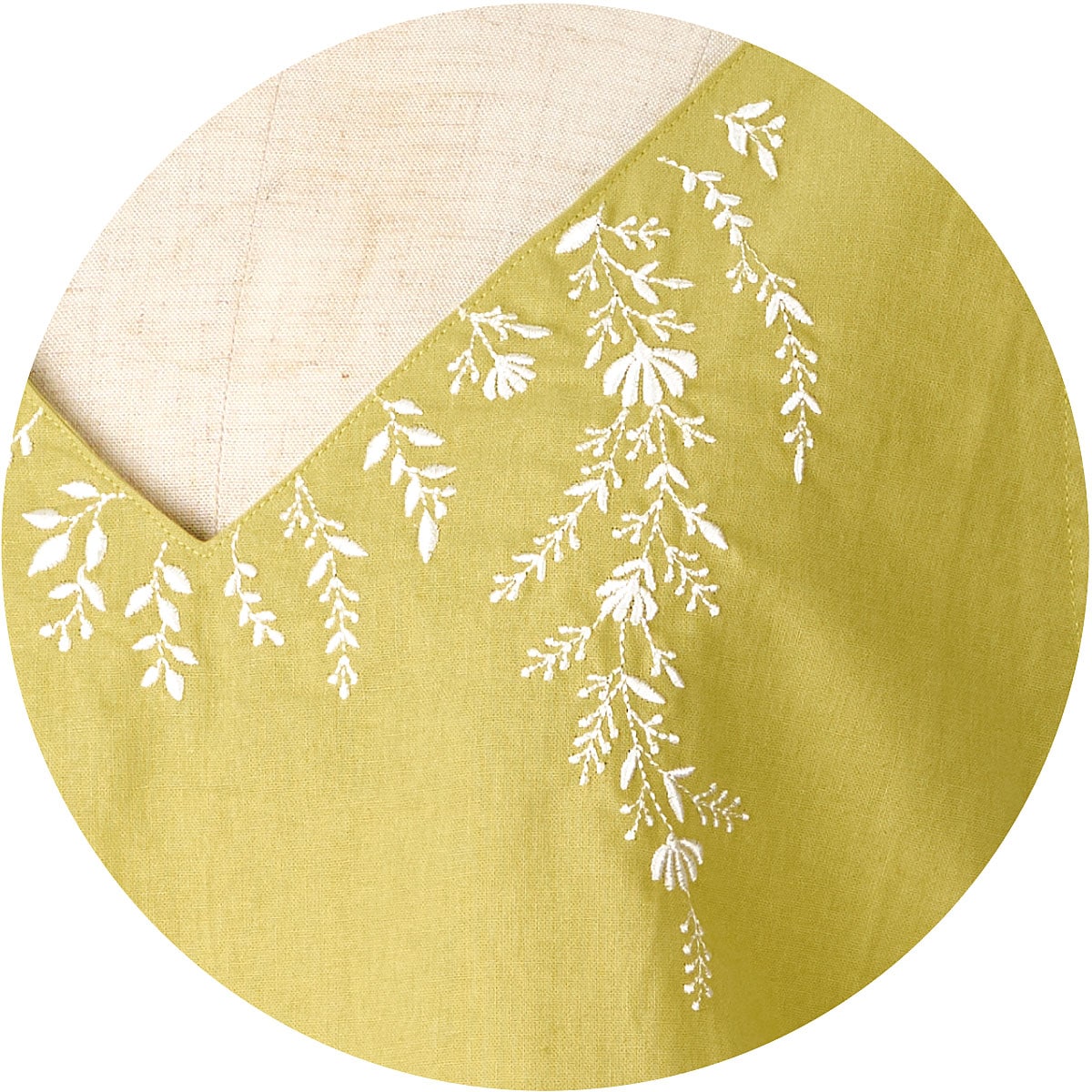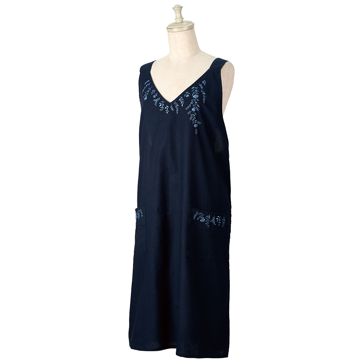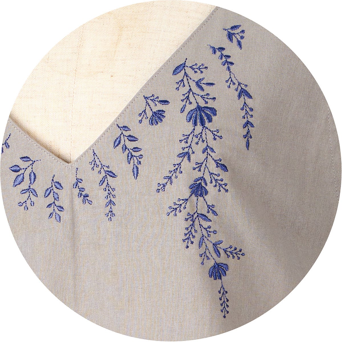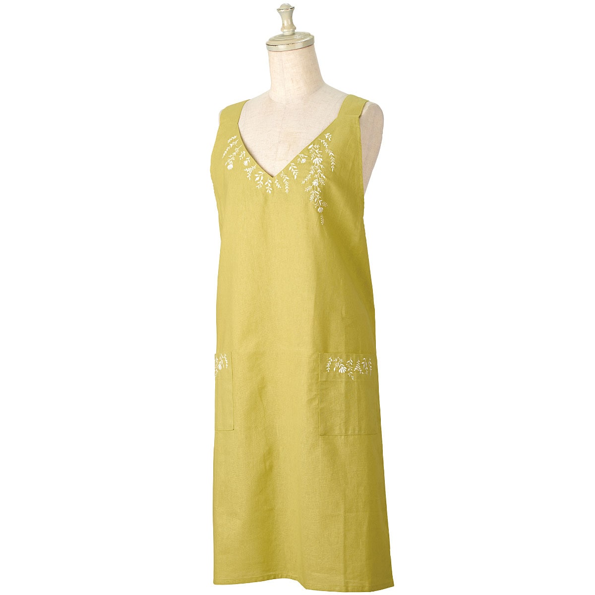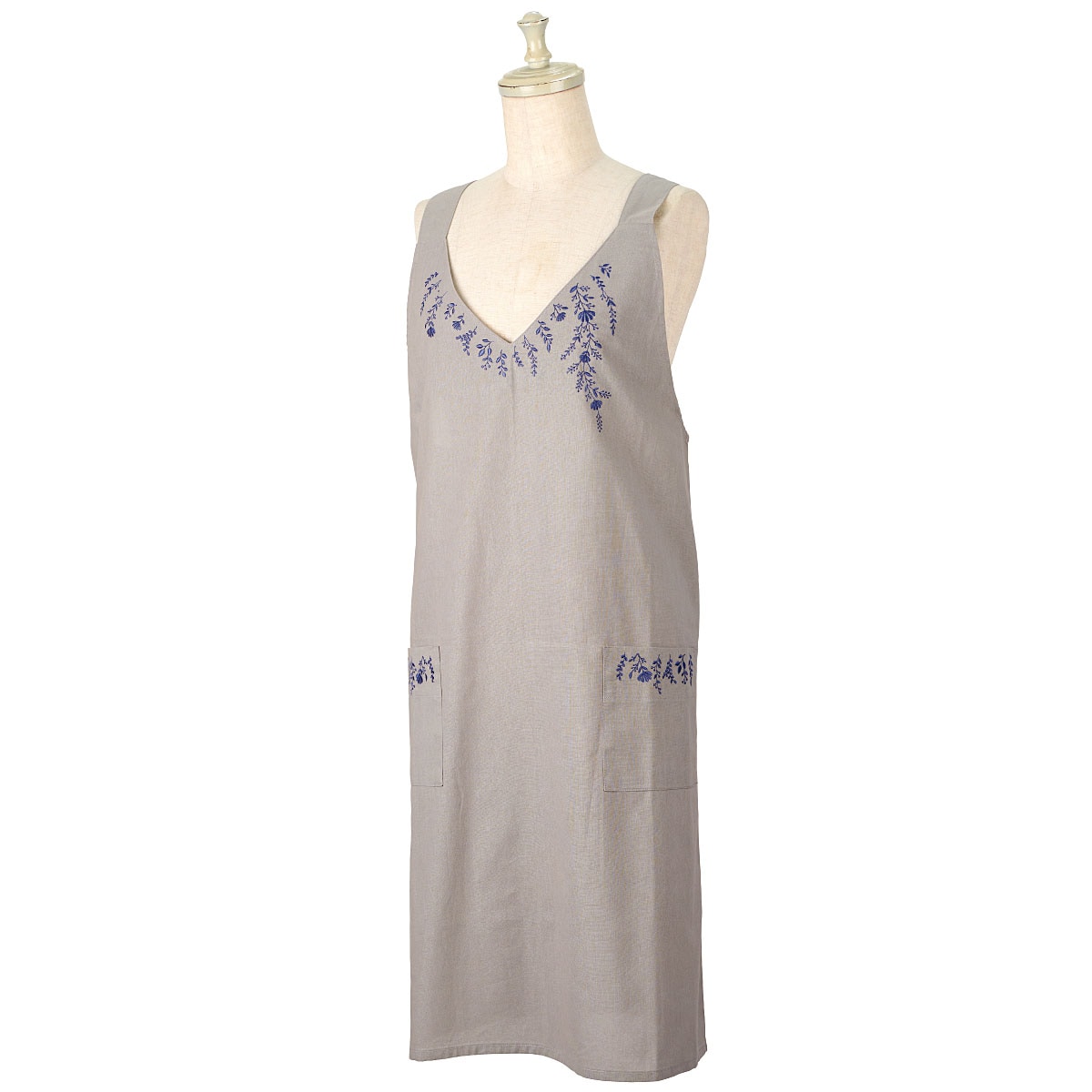 上品でシンプルな刺繍が可愛い♪エプロンが服装の一部に?!洋服に合わせやすいおしゃれなエプロンです。