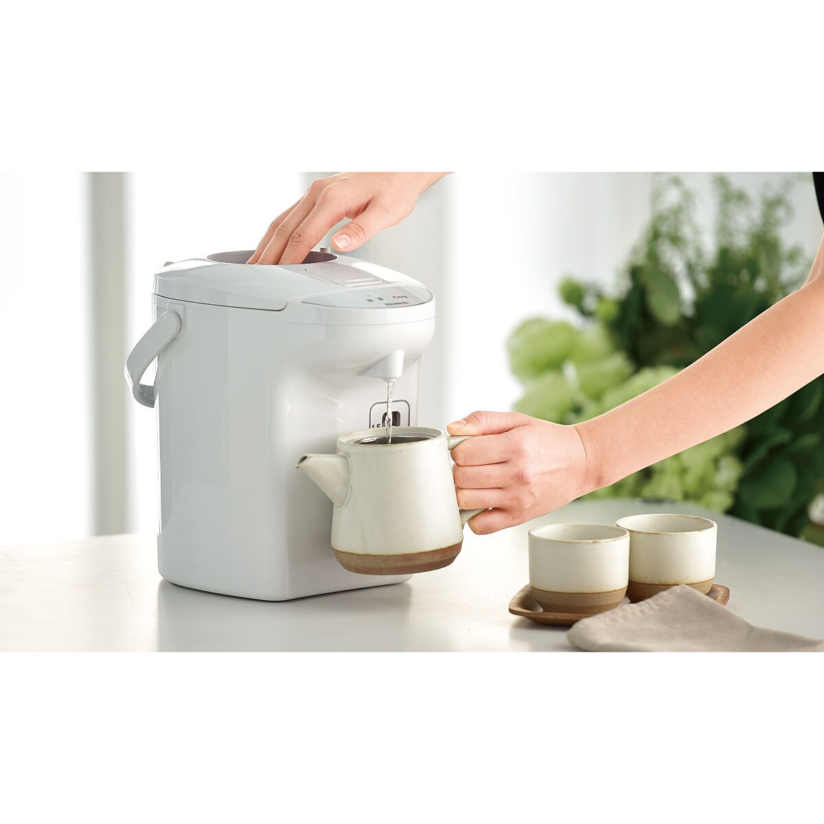 フタを外して洗えるから、毎日のお手入れがラクラク♪プッシュ式で停電時も給湯できるシンプルな電気保湿エアーポット