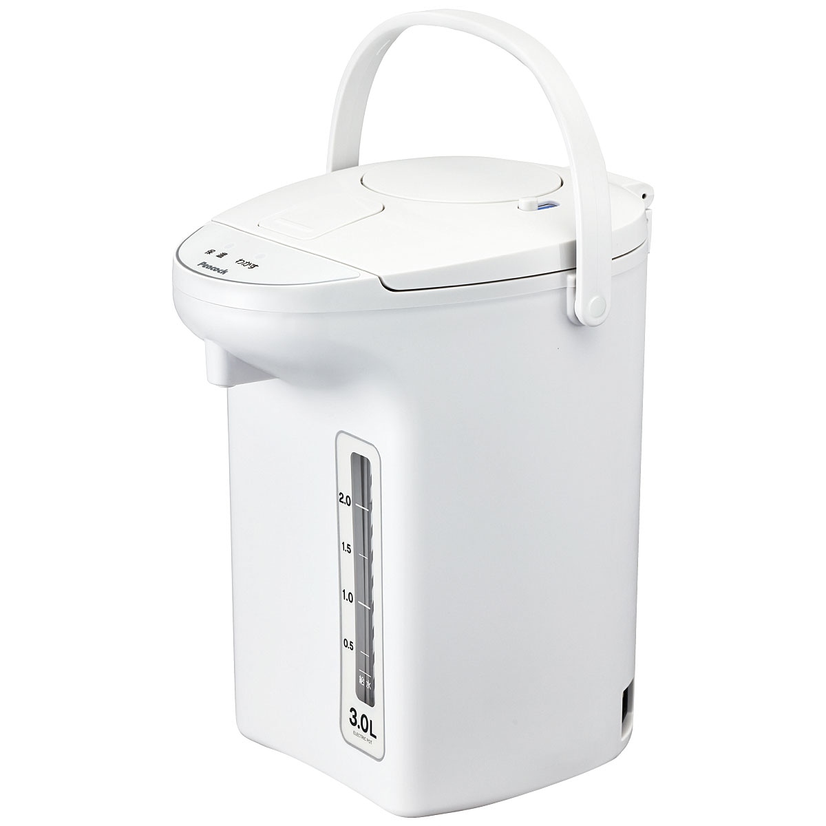■[胴部・上ふた・ハンドル]ポリプロピレン [内ふた・内容器]ステンレス鋼 [操作パネル・水量計シール]テトロンフィルム [上ふた開閉ロック]ABS樹脂 ■サイズ(約)/ 幅21×奥行27.9×高さ[2.2L]26.2[3.0L]30.1(ハンドルを倒した状態) ■重量(約kg)/[2.2L]1.9[3.0L]2.0(コード含む) ■電圧/100V ■電源コードの長さ/約1.4m ■消費電力/ 700W ■給湯方法/手動エアー式 ■保温効力/湯沸かし時間の目安[2.2L]約20分[3.0L]約26分(水量:満水 水温・室温23℃の場合)■最高温度/約95℃ ▼非沸騰タイプのため、調乳用には使用しないでください。●中国製【返品・交換不可】 【保証書付1年間】