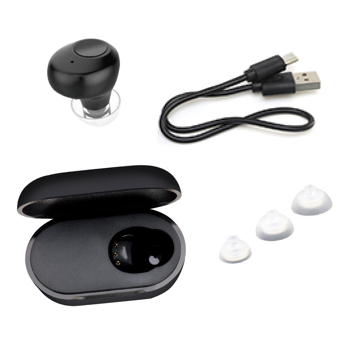 【ハウリング抑制機能】・デジタル音声処理などハウリングを抑制する機能で装着時のイヤなハウリングを予防。※ご使用の状況などにより個人差があります。■サイズ/(約cm)[本体]2.7×2.0×2.5[ケース]4.5×2.6×3.1■重量/[集音器]約3.6g [充電ケース]約22.8g■充電時間/約2時間 (USBから充電ケース)/約2時間 (充電ケースから集音器)■連続作動時間/約8時間●付属品/イヤーチップ(S・M・L)×各1個、USBケーブル×1●台湾製【保証書付1年間】【航空便不可】※コンセントに接続するには別売りのACアダプターが必要です。※商品の特性上、返品・交換はお受けできません。