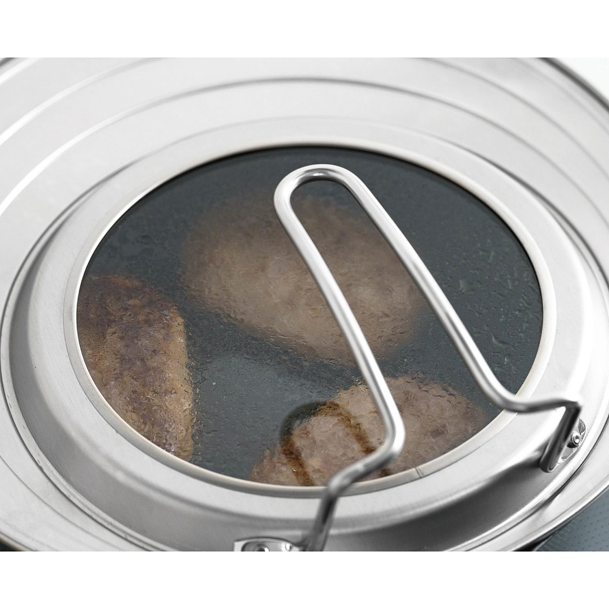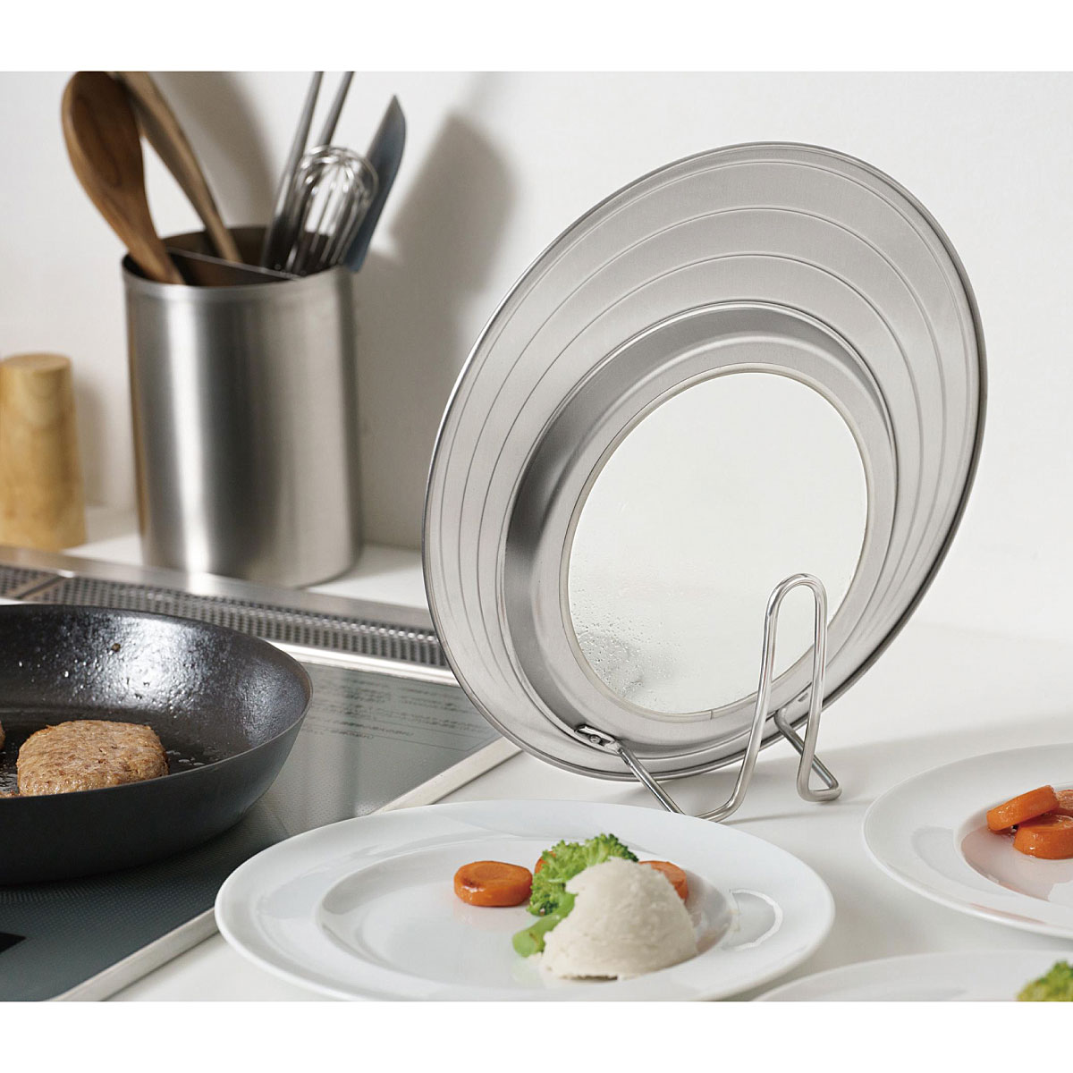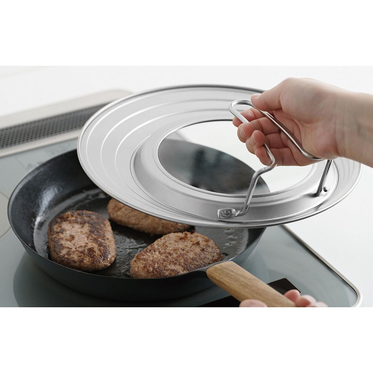 20・22・24・26cmのフライパンに対応。ガラス窓付きなので、フライパンカバーをしながら中の食材の状態を確認できます。自立するので調理中の置き場所に困りません。