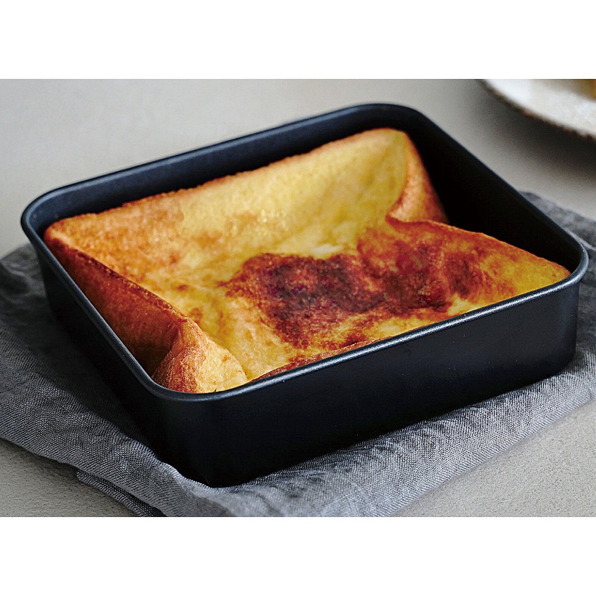 パン1枚がぴったり入るフレンチトースト作り用のバット。冷蔵庫でじっくり浸せばしっとりフワフワのフレンチトーストに。卵液を無駄なく漬け浸し、そのままトースターで調理できます。フライパン要らずで洗い物が少なく済みます。