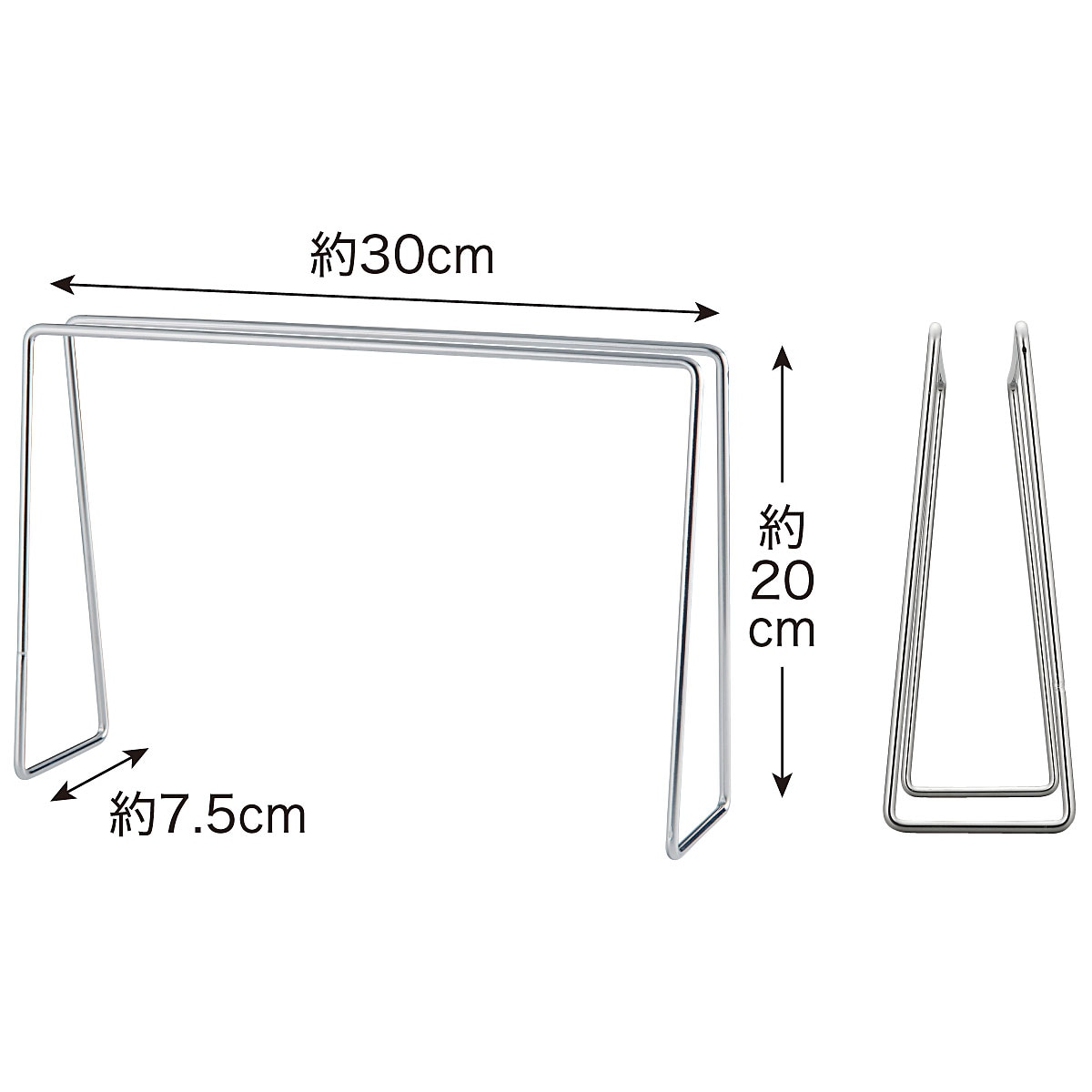ふきんを横からサッと掛けられます。2枚のふきんが重ならず、風を通しながら清潔に乾かすことができます。シンクの壁際にさりげなく置いておけ、使わない時も邪魔になりません。素材はサビにくいステンレス製でいつも清潔にお使いいただけます。