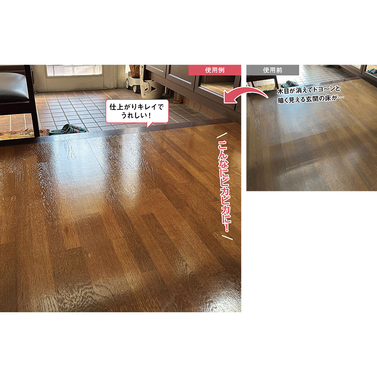 〈難しい作業は一切不要!〉塗るだけでフローリングに美しい深みと輝きが戻ります。キズを防ぎ、人やペットがすべりにくくなる嬉しい効果も♪〇家具や木製品などいろいろ使える!古くなったタンス、ツヤが無くなったテーブル、色落ちした花台 など〇約30畳分でたっぷり使える!