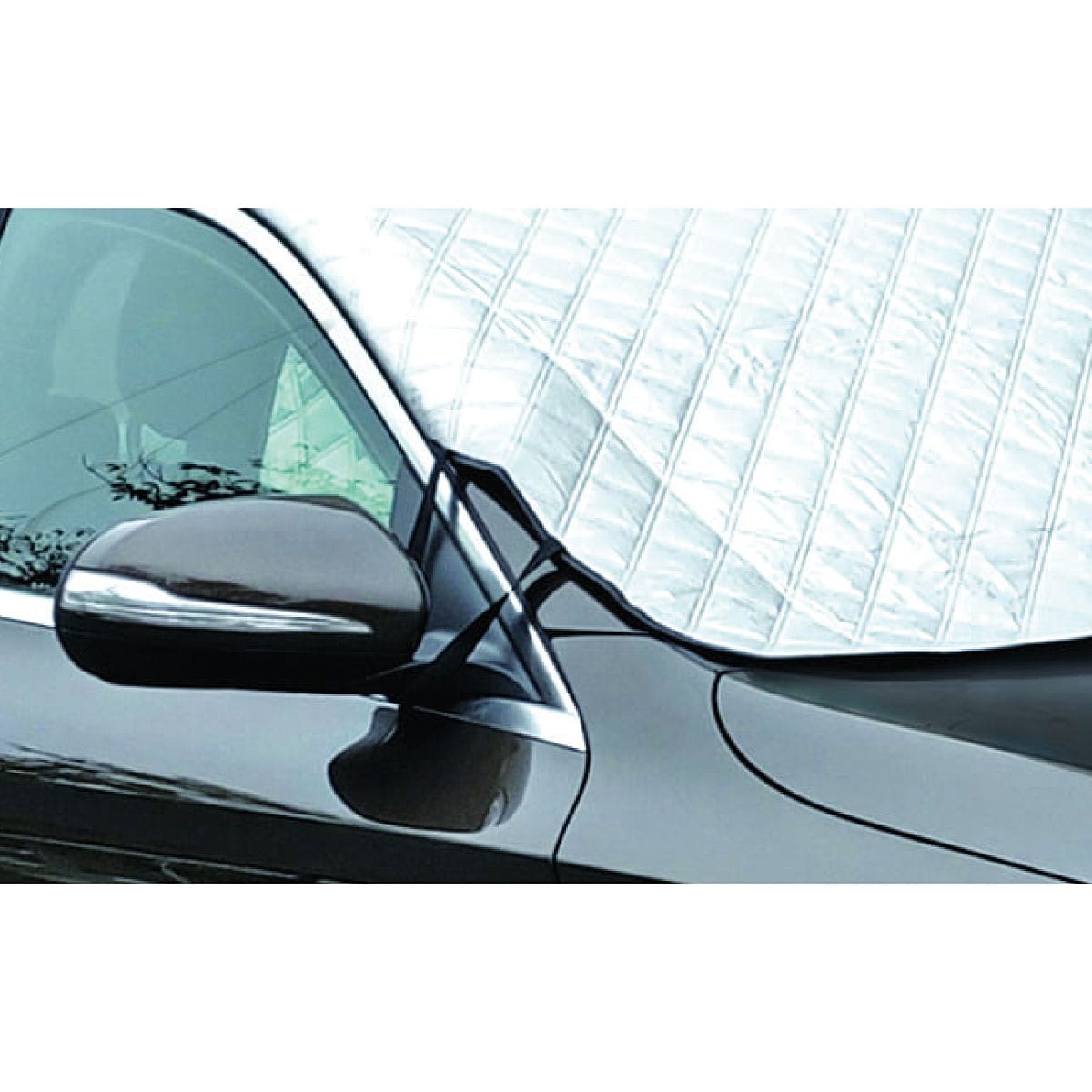 ゴムをサイドミラーに引っ掛け、耳をドアにはさむだけの簡単な取り付けで夏の日差しから守ります。ダッシュボードの高温防止に。