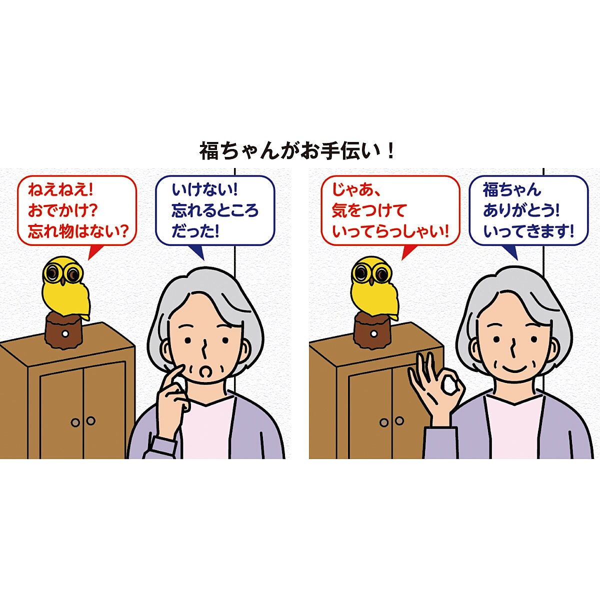 「あれ、コンロの火消したかな…」そんな不安は福ちゃんにおまかせ!玄関先でセンサーで反応し、収録されている6つのセリフをかわいい子どもの声で注意喚起します。
