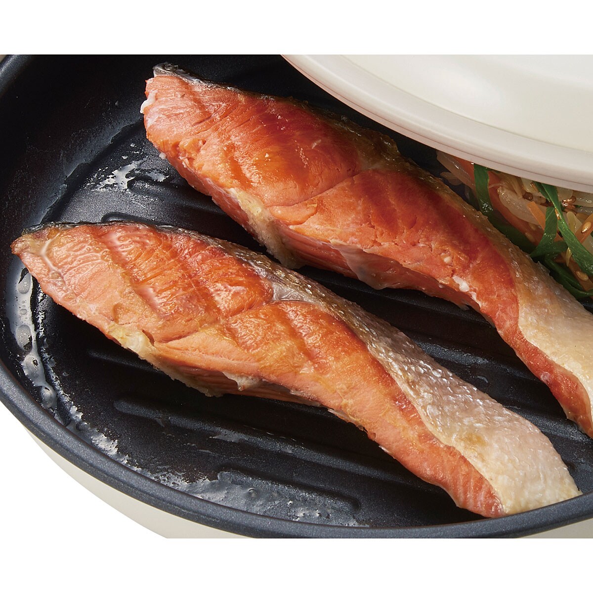 グリル調理をしたような焼き目がつく波型プレートを採用し、余分な脂も落ちてヘルシー! ほったらかし調理で、美味しく料理ができちゃいます!