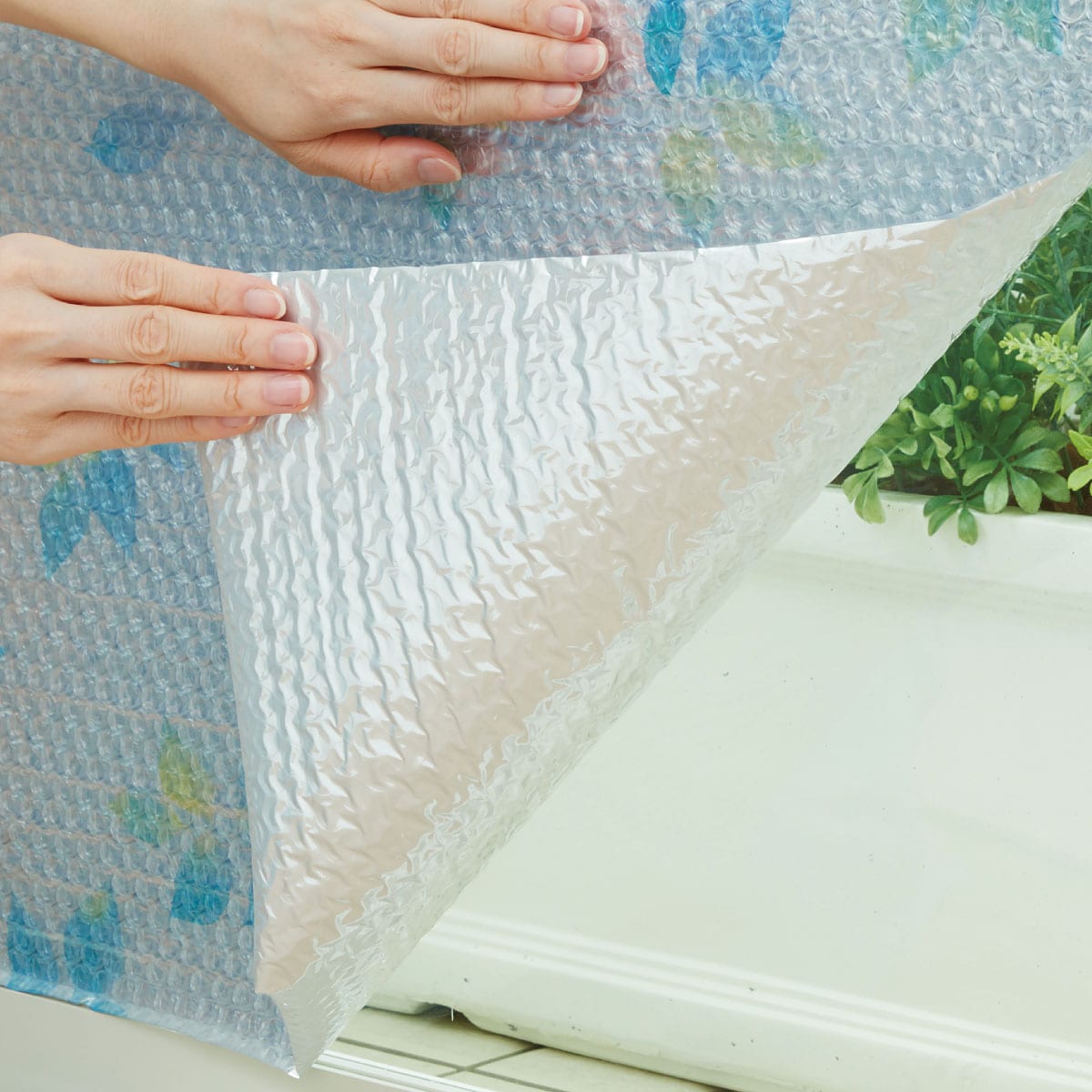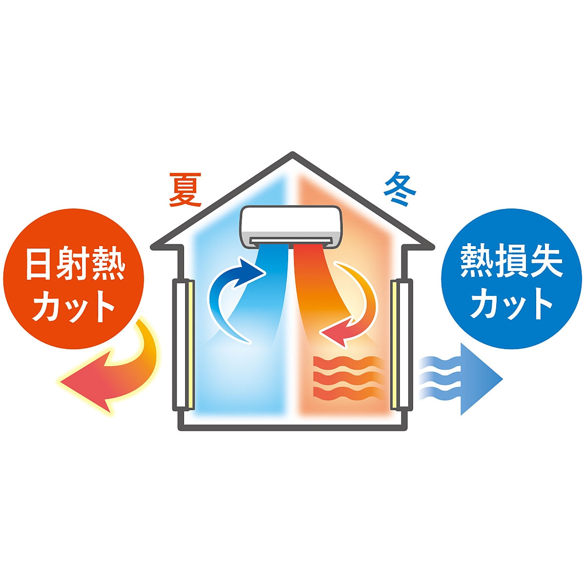 アルミの力で暑~い太陽の光を反射して紫外線を約98%カット。窓にあわせてカットして貼るだけ!糊残りしにくい全面粘着タイプ。夏も冬も活躍!