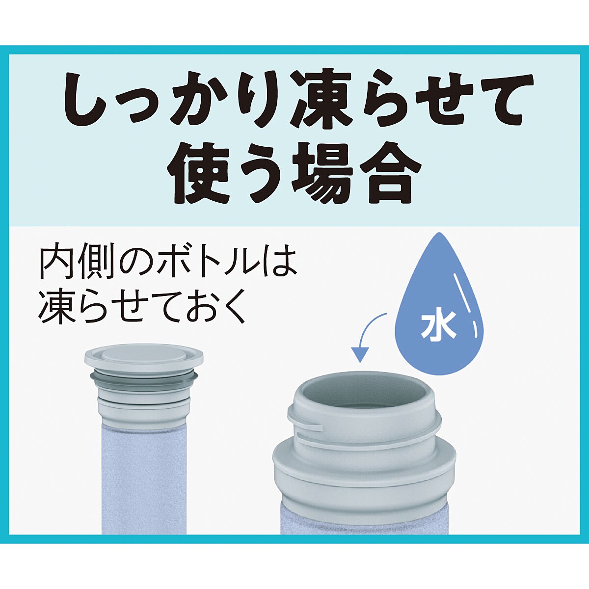 冷たいまま持ち運べて外出先でもクールダウン!魔法瓶メーカーが作った冷たさキープホルダーに入れて、氷のうを外で使うことができます。