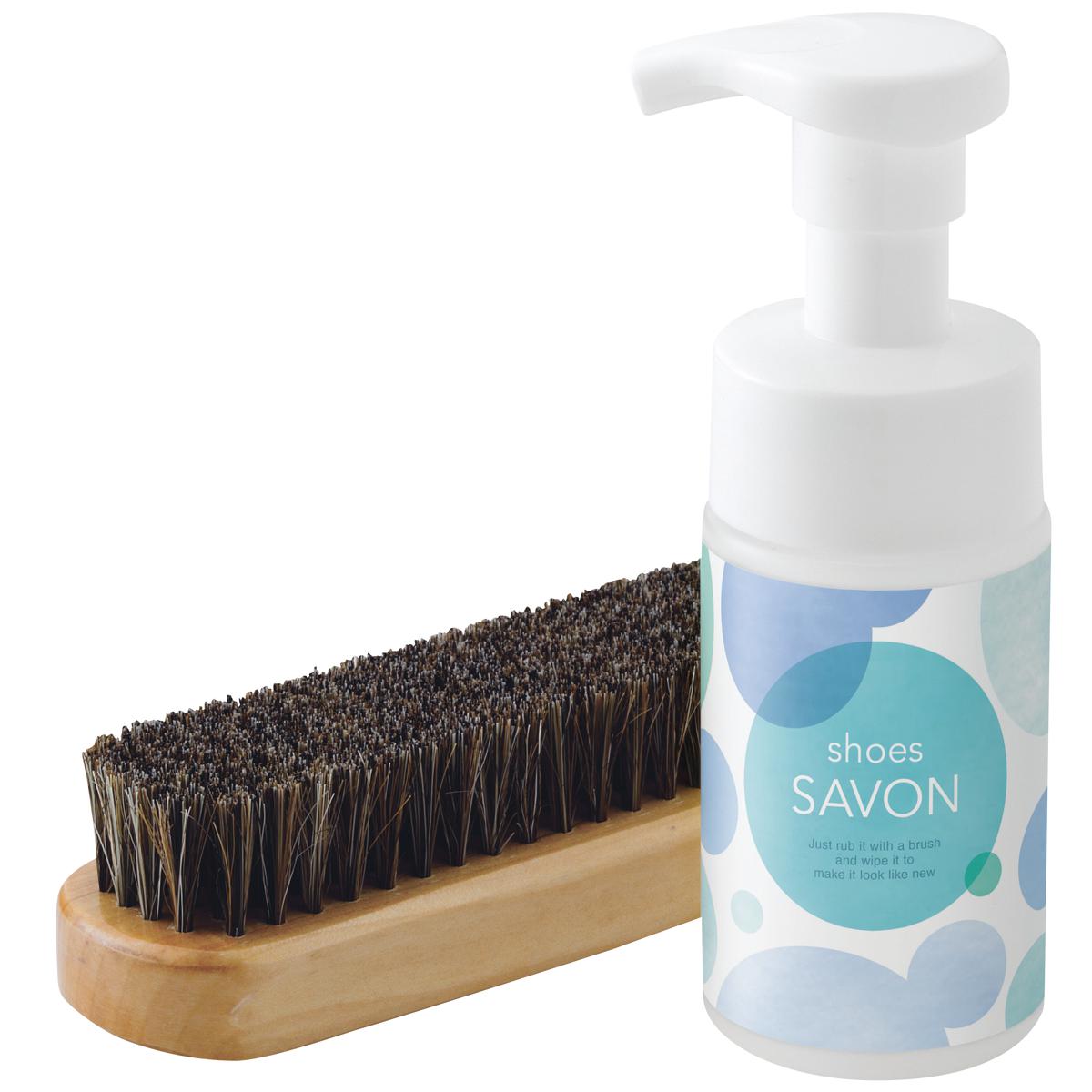 スニーカーからスウェードパンプスの汚れまですっきり落とせる靴用シャンプー。泡状フォームを直接つけて専用ブラシでこすって乾いた布で拭いて完了。水がいらないからお出かけ前に使ってもすぐに履けます。