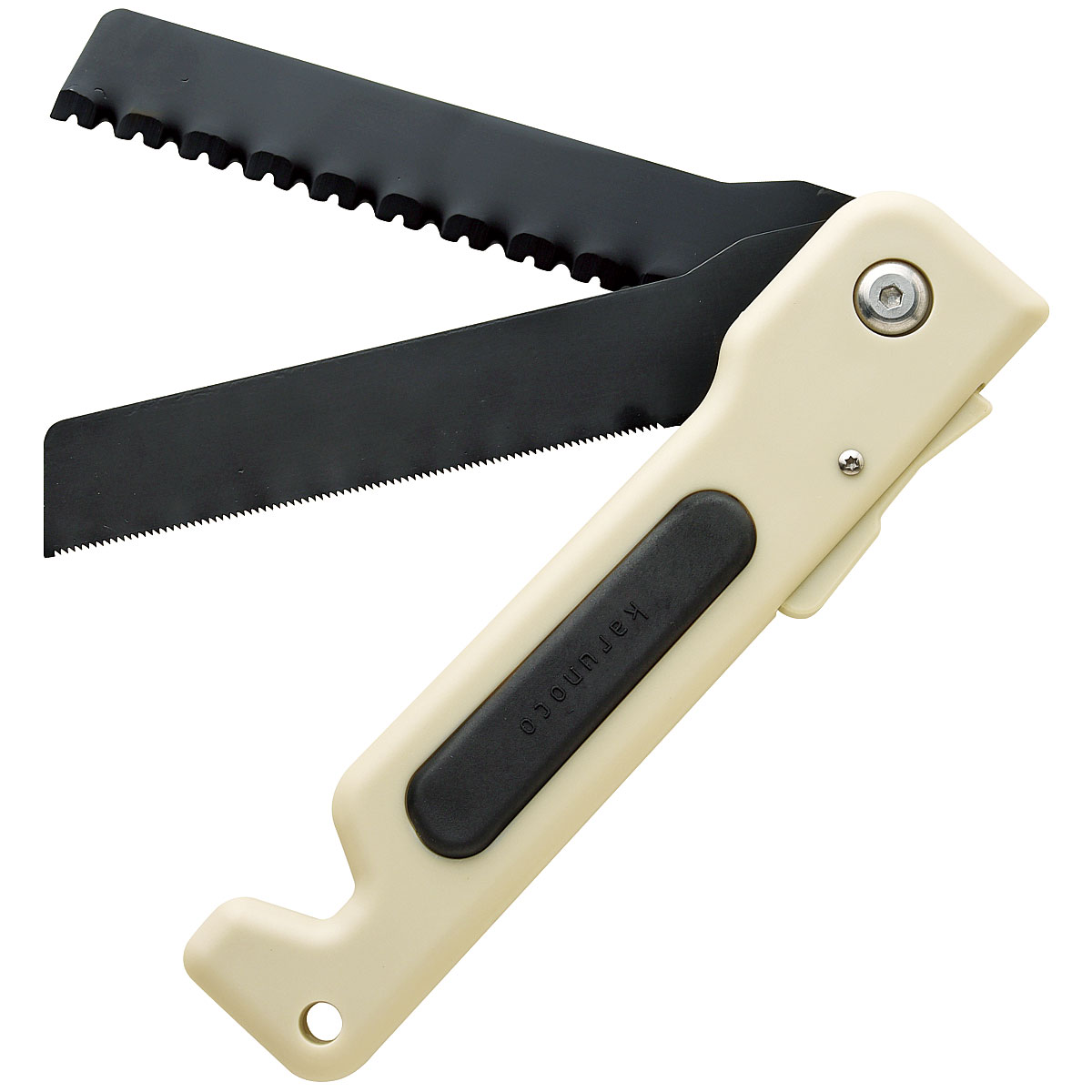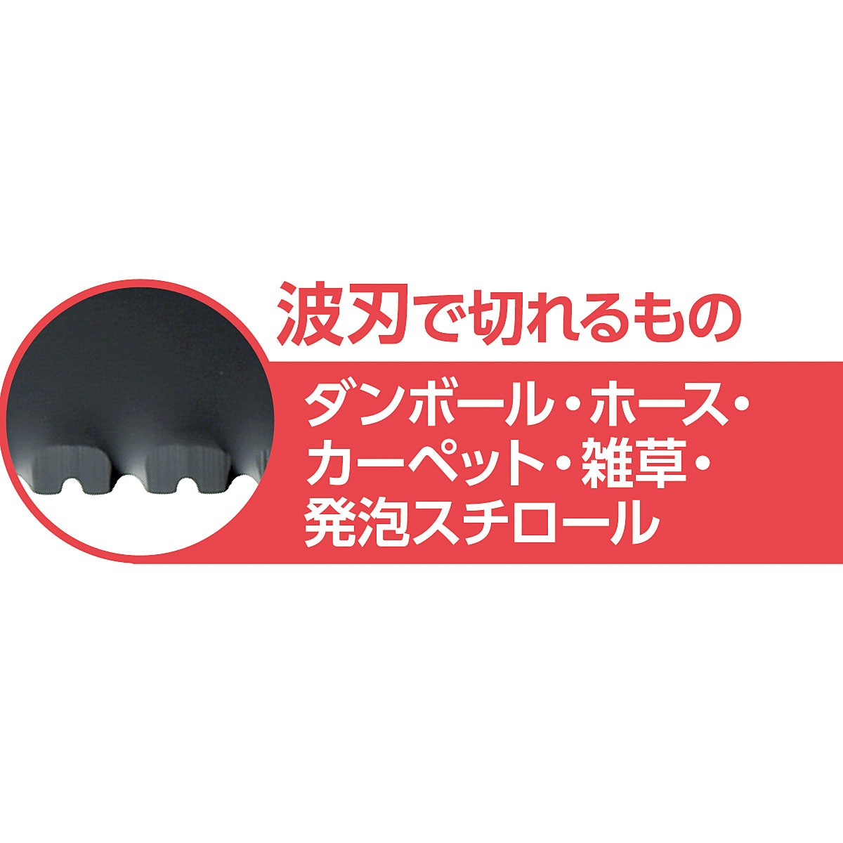 波刃とノコ刃。異なる2種類の刃を格納!切るものを選びません。