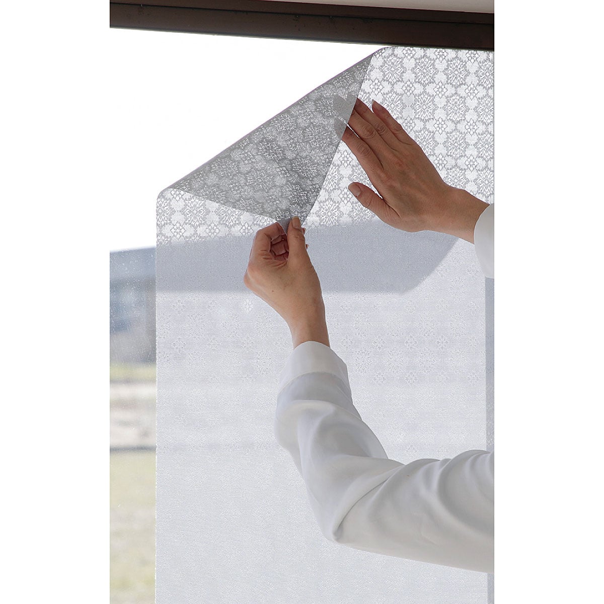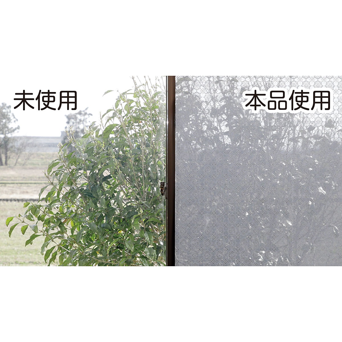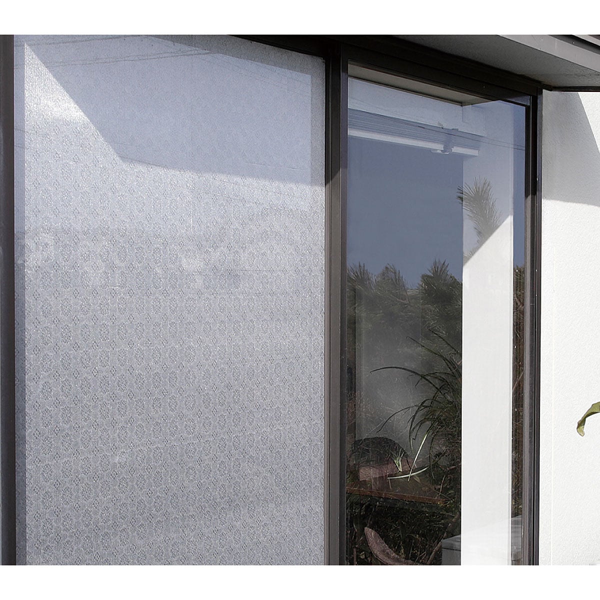 目隠し・日差しカットが同時にできるレース模様の遮光・遮熱シート!〇そのまま貼れて、貼り直しもOK。〇凹凸ガラスにも貼り付け可能で、窓に合わせてはさみでカットできます。〇外からは室内が見えづらくなりますが、室内からは外の景色が確認できます。