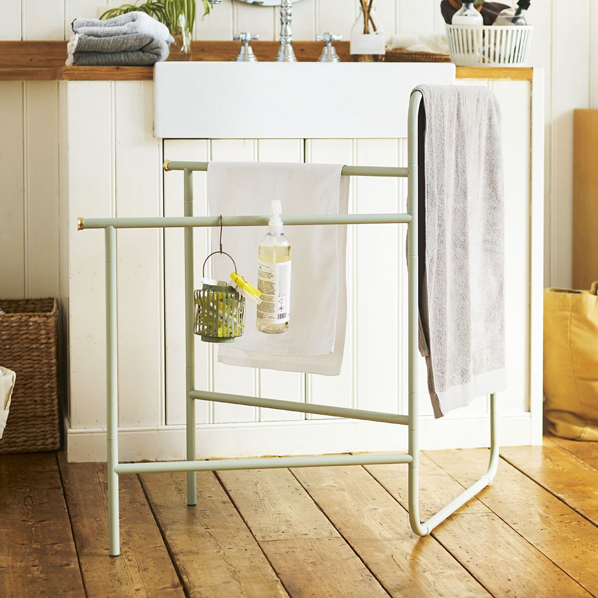 【タオルをまとめて部屋干しできる♪】シンプルさが使いやすさ!折りたたんでスッキリ収納も◎