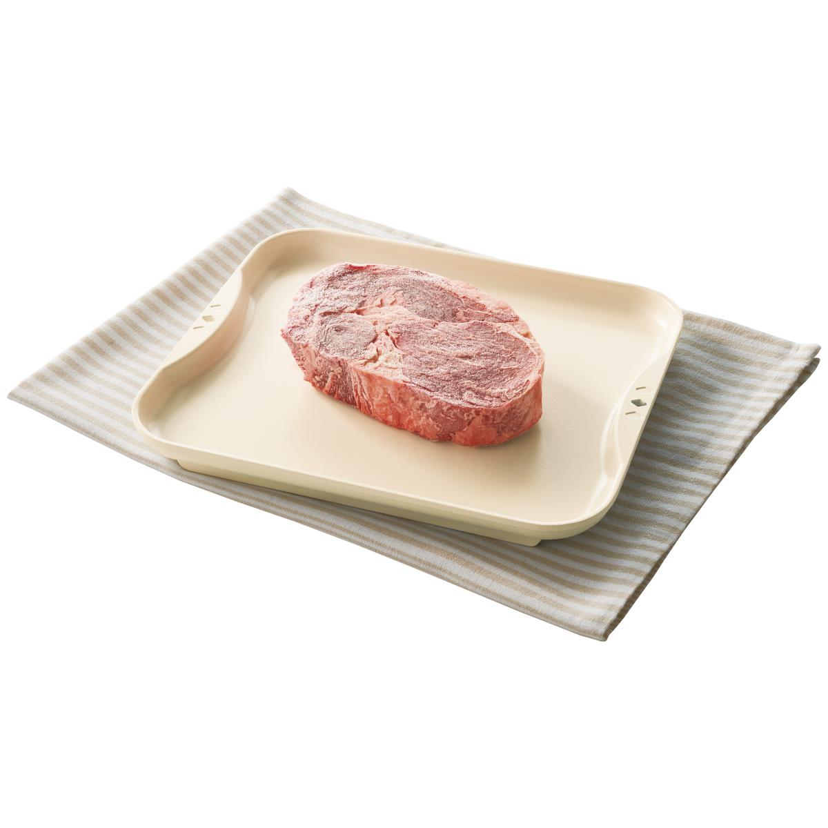 熱伝導率に優れたアルミニウム合金により、通常の自然解凍よりも早い時間でムラなく解凍できます。