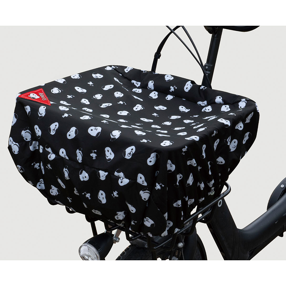 自転車カゴを雨から守ってくれるレイニーキャップです。カバンやカゴに引っ掛けることができるカラビナ付きで、折りたたんでコンパクトにもなります。かわいいスヌーピー柄です。